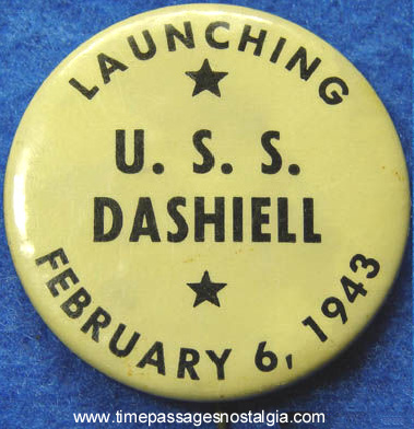 | 64k | Souvenir button of the launching of the USS Dashiell (DD-659) on February 6 1943. Courtesy of www.timepassagesnostalgia.com. | Tom Kerman |