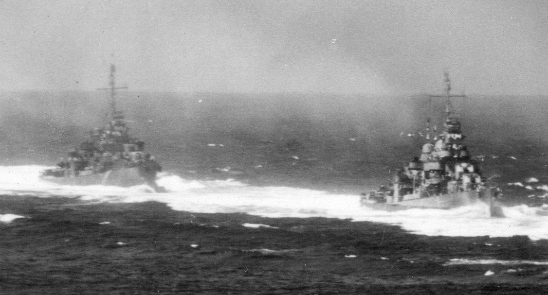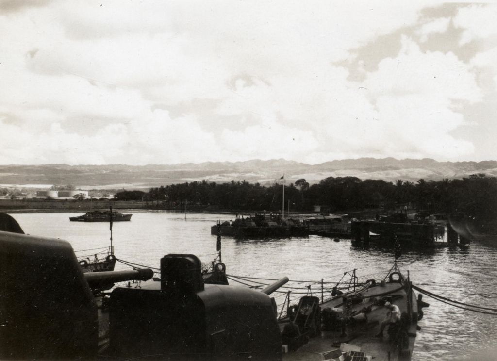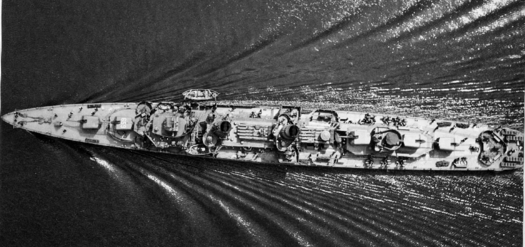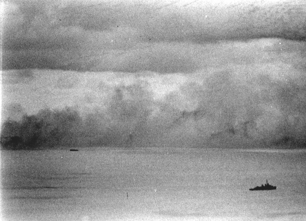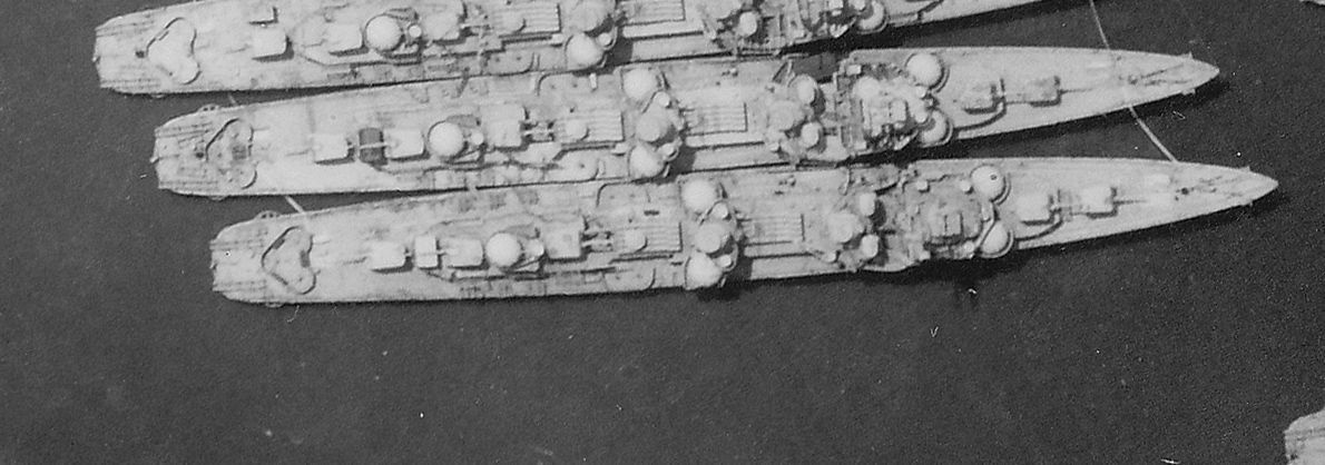 Photo taken from port bridge wing of Nashville, National Archives photo 80-GK-6884 (cropped). | John Chiquoine and Rick Davis |