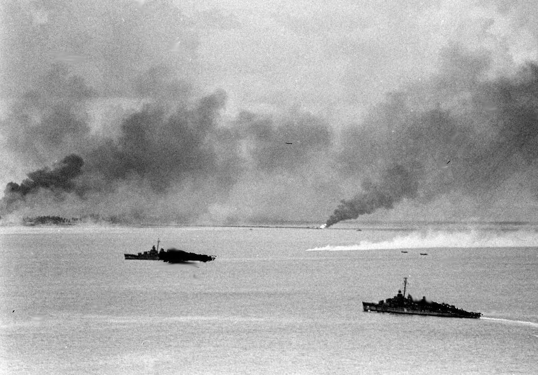 Five views of Dashiell, Ringgold (DD-500), and Pursuit (AM-108) in the Tarawa lagoon during their well publicized roles as the close-in landing fire support for the Betio landings, 20 November 1943. Photos by John Florea, Life Magazine. Used for educational and non-commercial purpose | John Chiquoine |