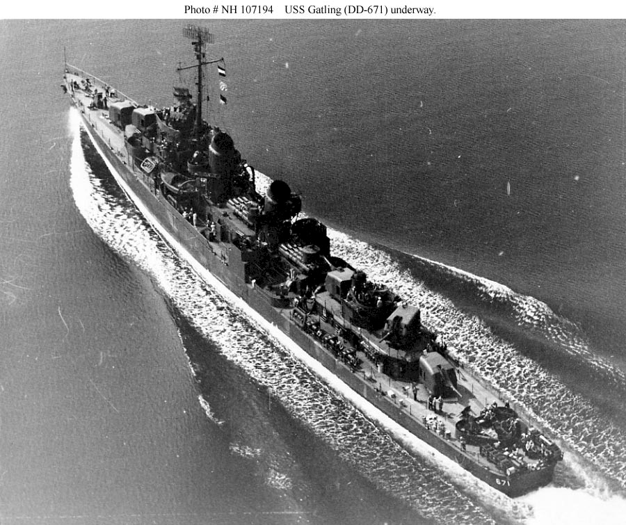 | 218k | USS Gatling (DD-671) underway circa 1943. Official U.S. Navy Photograph, from the collections of the Naval History and Heritage Command. Photo #: NH 107194. | Robert Hurst |