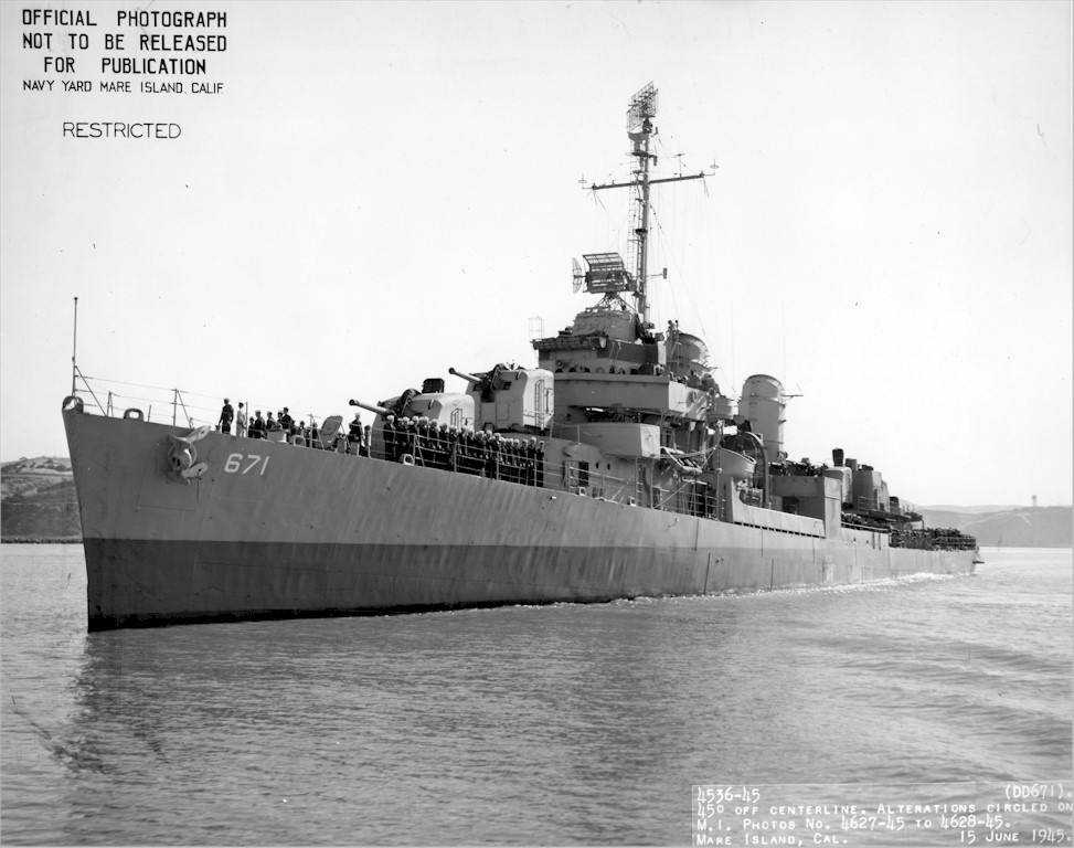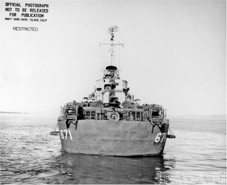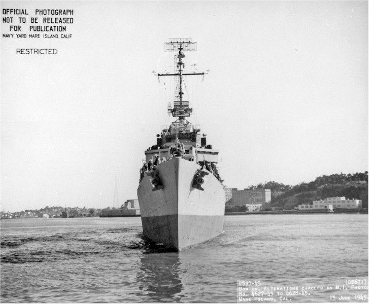 | 146k | View of USS Gatling (DD 671) departing Mare Island on 15 June 1945. | Darryl Baker |