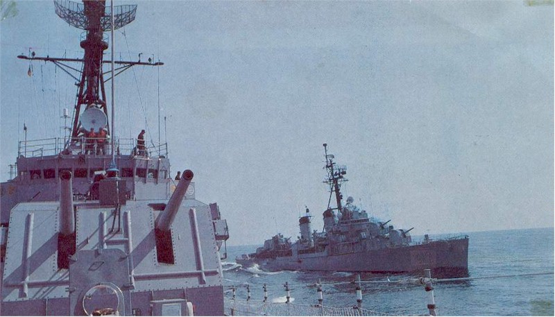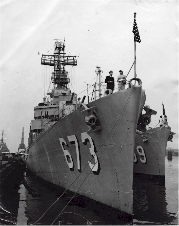 | 194k | USS Harry E Hubbard (DD-748) being maneuvered by tugs to the pier in preparation to be demothballed and placed back into service in the early 1950's with the USS Hunt (DD-674), USS Hickox (DD-673), USS Bullard (DD-660) and USS Rooks (DD-804) in the right background. Photo courtesy of Life magazine. | Bill Gonyo |