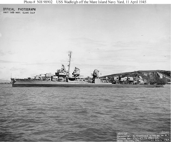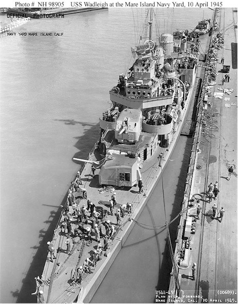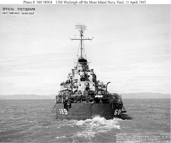 | 103k | USS Wadleigh (DD-689) Off the Mare Island Navy Yard, California, 11 April 1945. Official U.S. Navy Photograph, from the collections of the Naval Historical Center. | Fred Weiss |