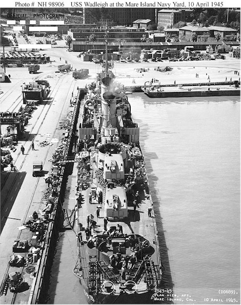 | 126k | USS Wadleigh (DD-689) At the Mare Island Navy Yard, California, 10 April 1945. Circles mark recent alterations to the ship. Official U.S. Navy Photograph, from the collections of the Naval Historical Center. | Fred Weiss |