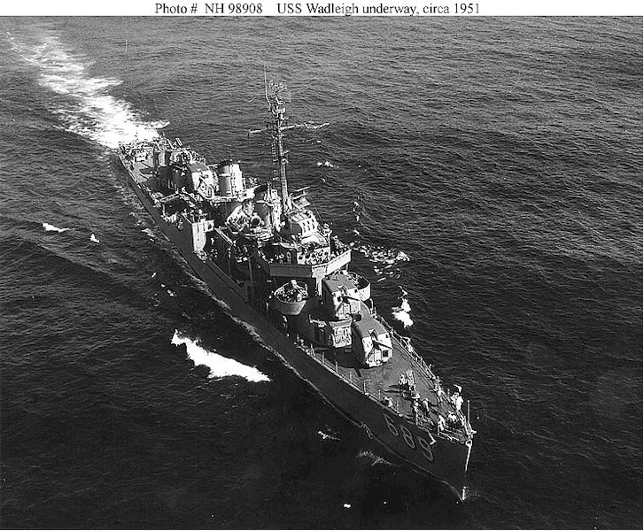 | 160k | USS Wadleigh (DD-689) Underway, circa 1951, soon after she was recommissioned during the Korean War. Official U.S. Navy Photograph, from the collections of the Naval Historical Center. | Fred Weiss |