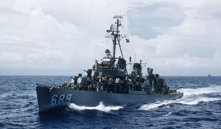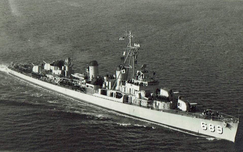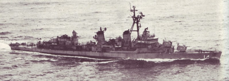 | 157k | Blanca Encalada (DD-14, ex-USS Wadleigh) underway in 1970, location unknown. Chilean Navy Official | Robert Hurst |
