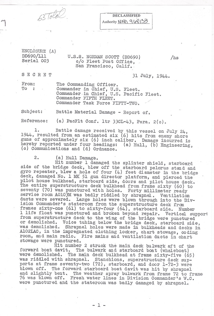 | Battle Damage Report Dated July 31, 1944 |