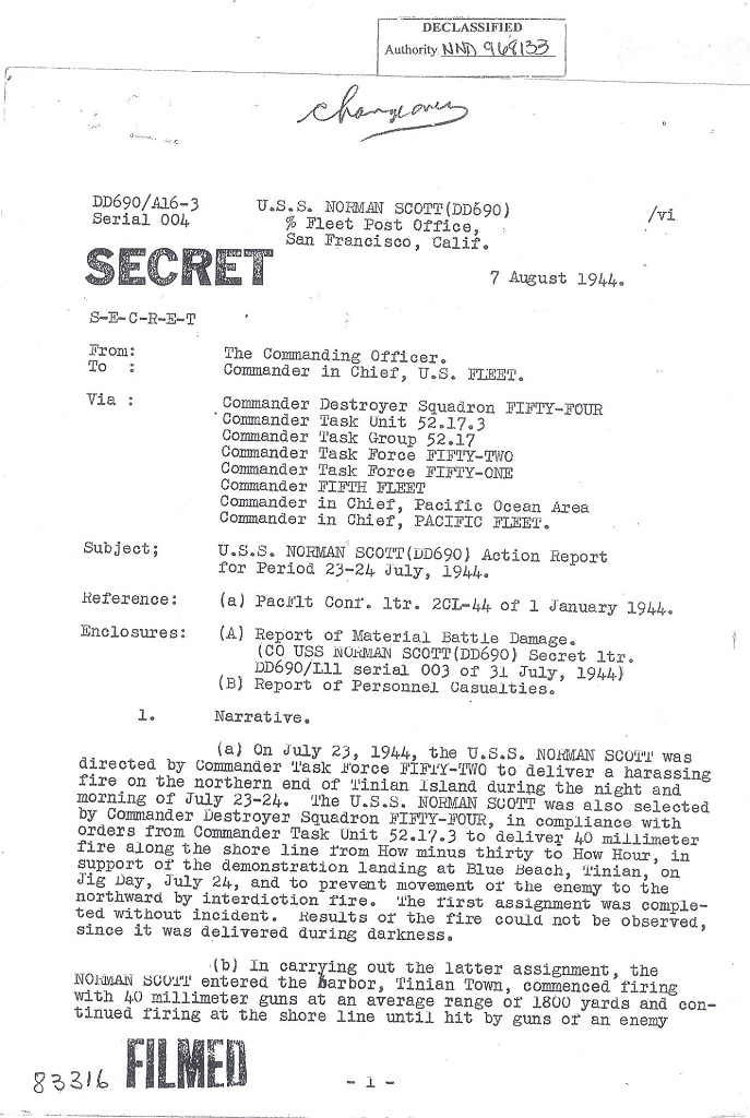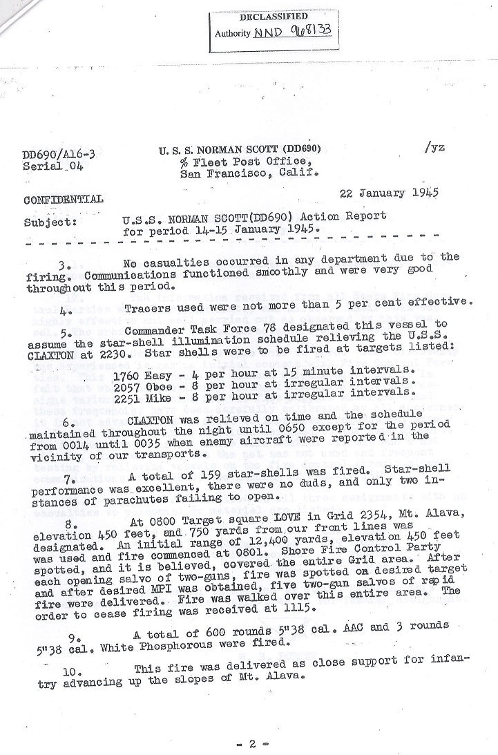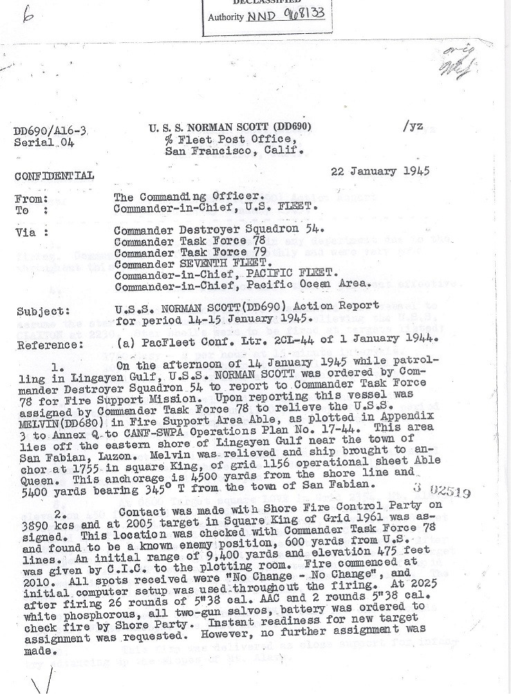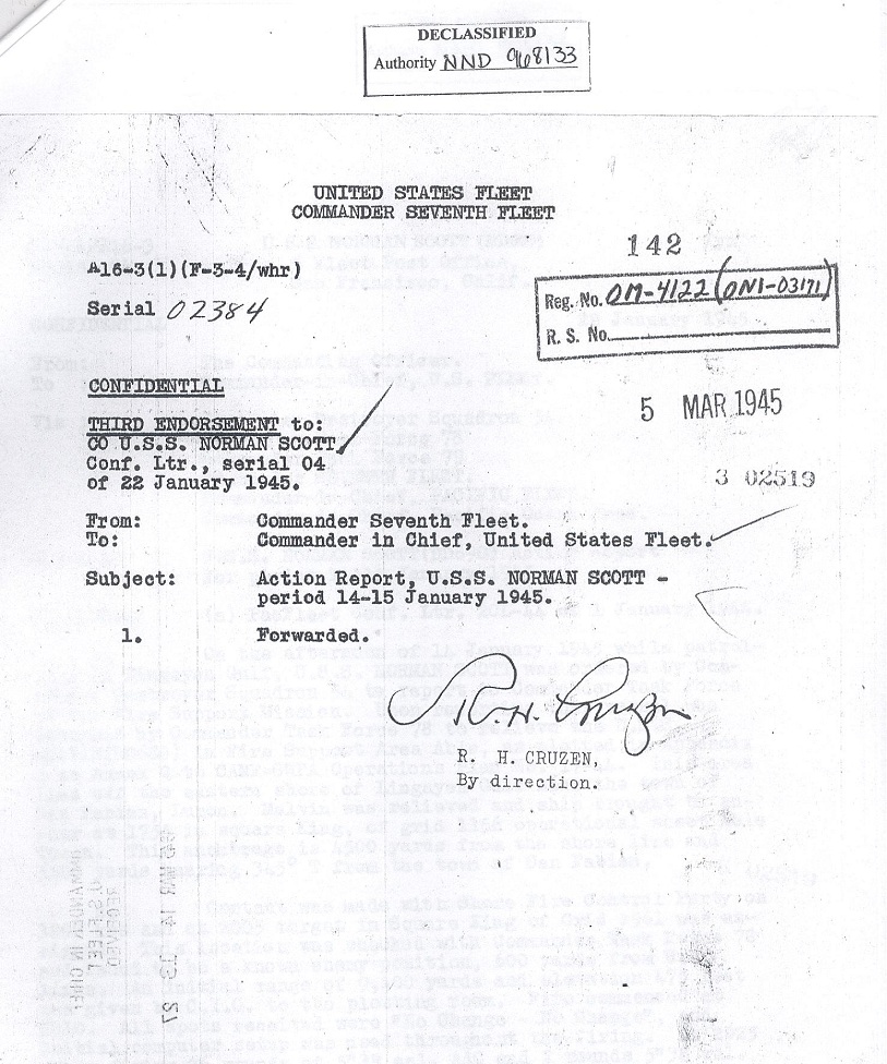 | Action Report for January 14-15, 1945 with Endorsement |