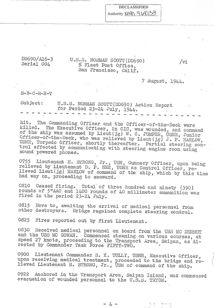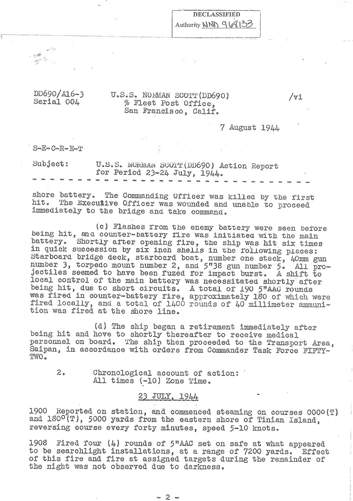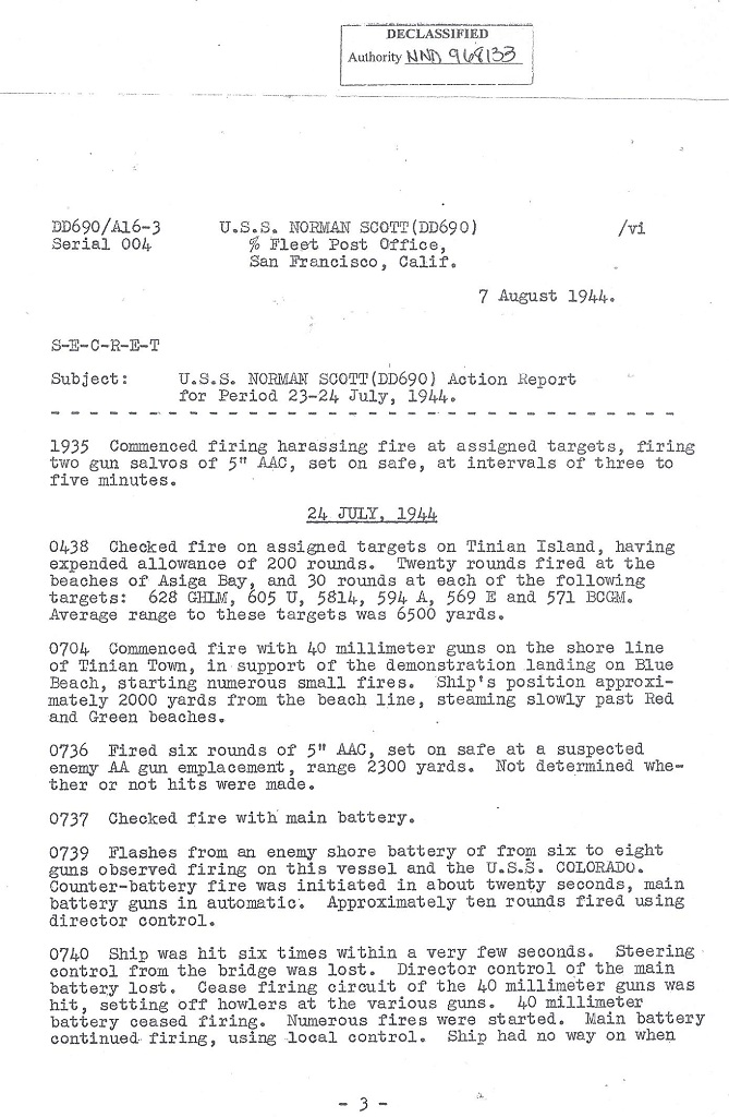 | Action Report for July 23-24, 1944 with Personnel Casualties, Endorsements and Battle Damage Report |