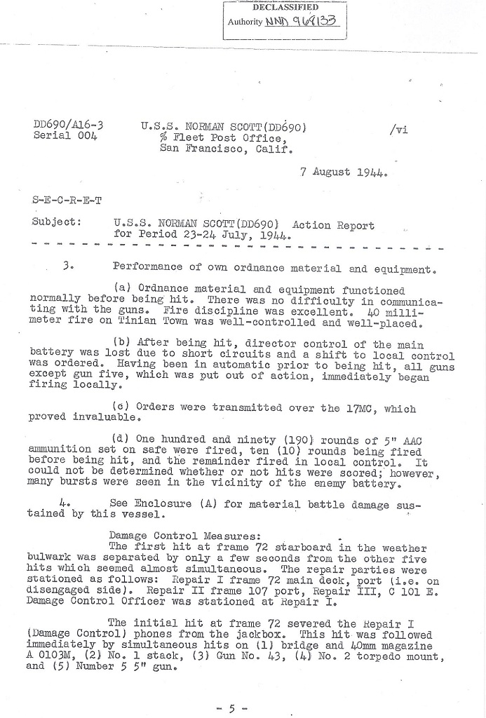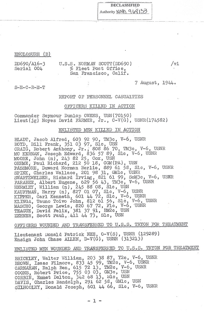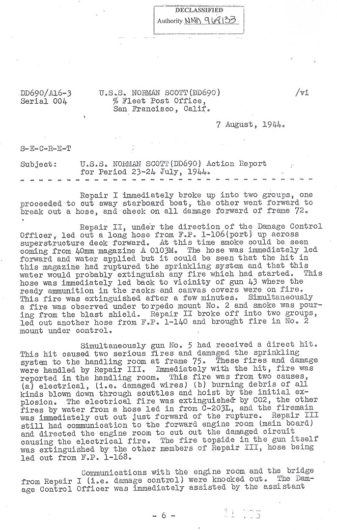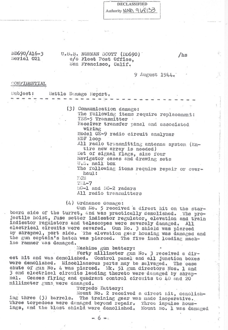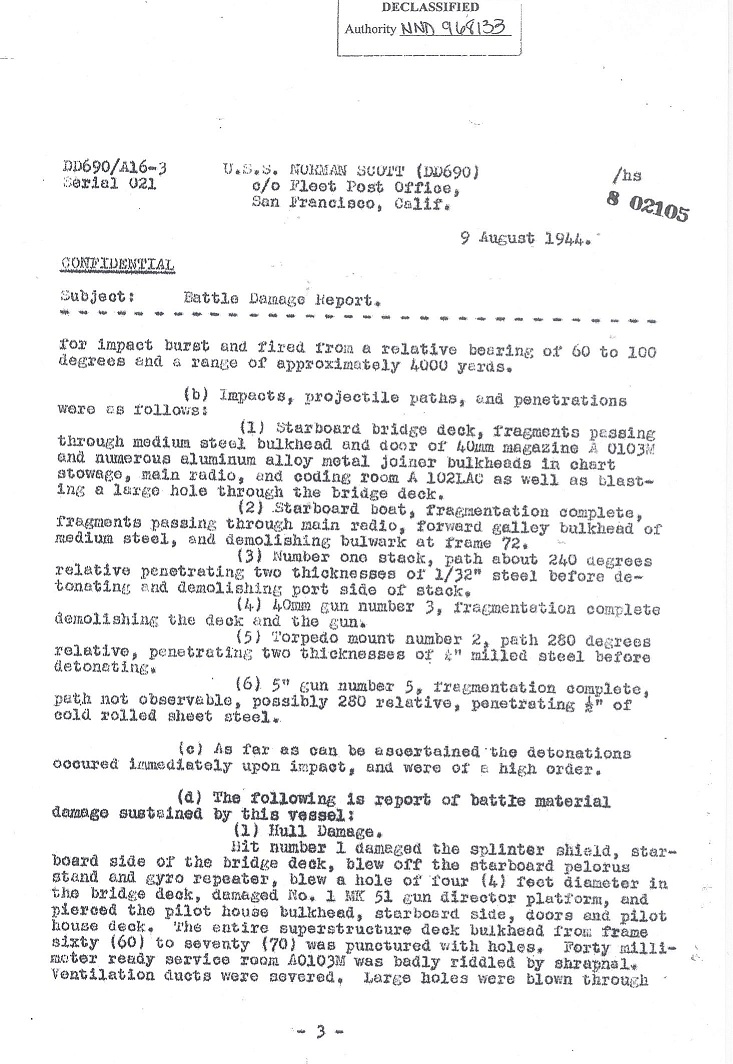 | Battle Damage Report Dated August 9, 1944 |