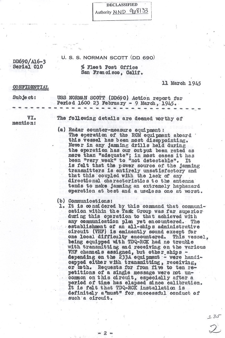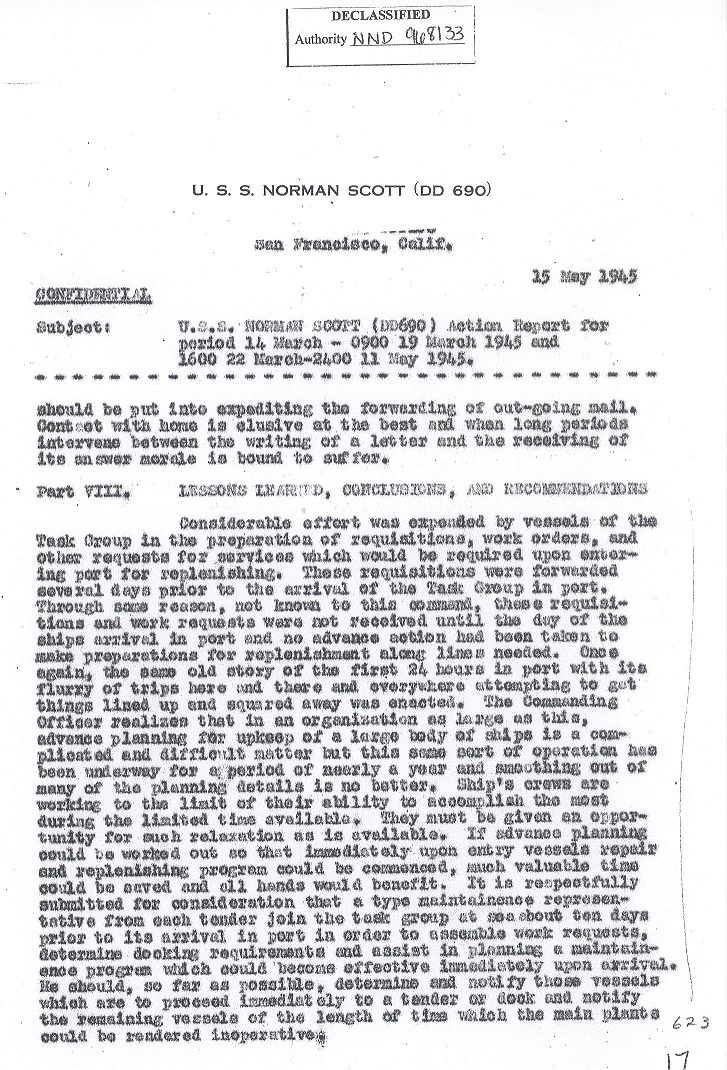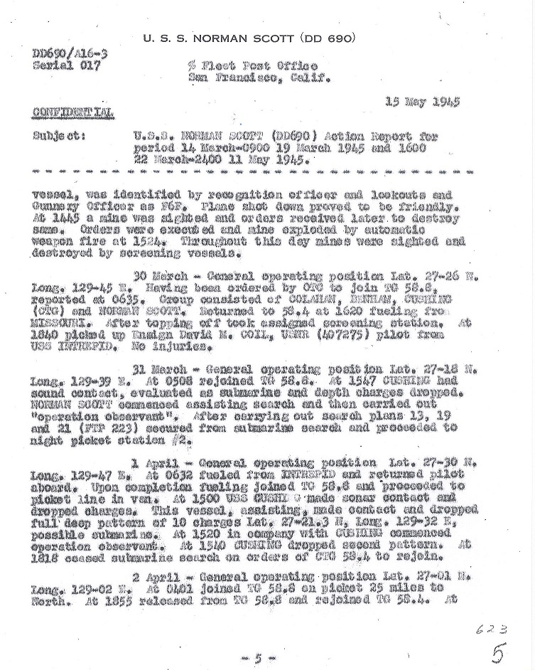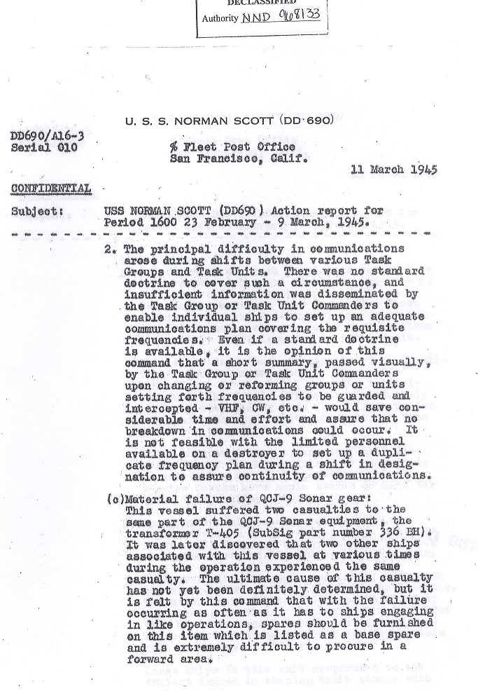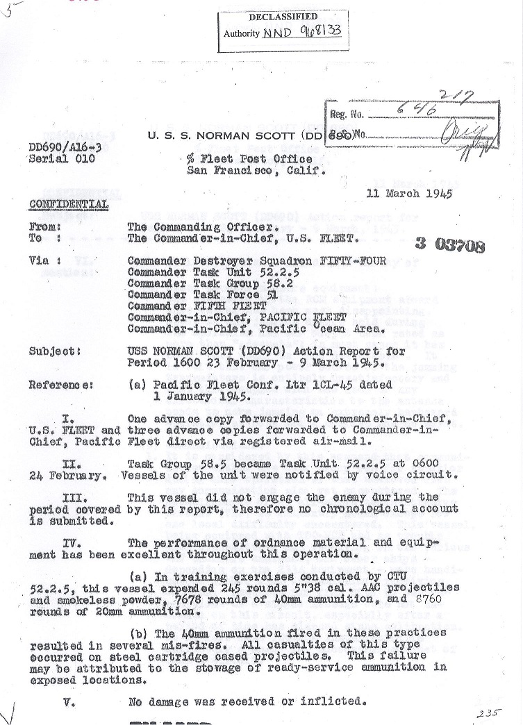 | Action Report for February 23 to March 9, 1945 |