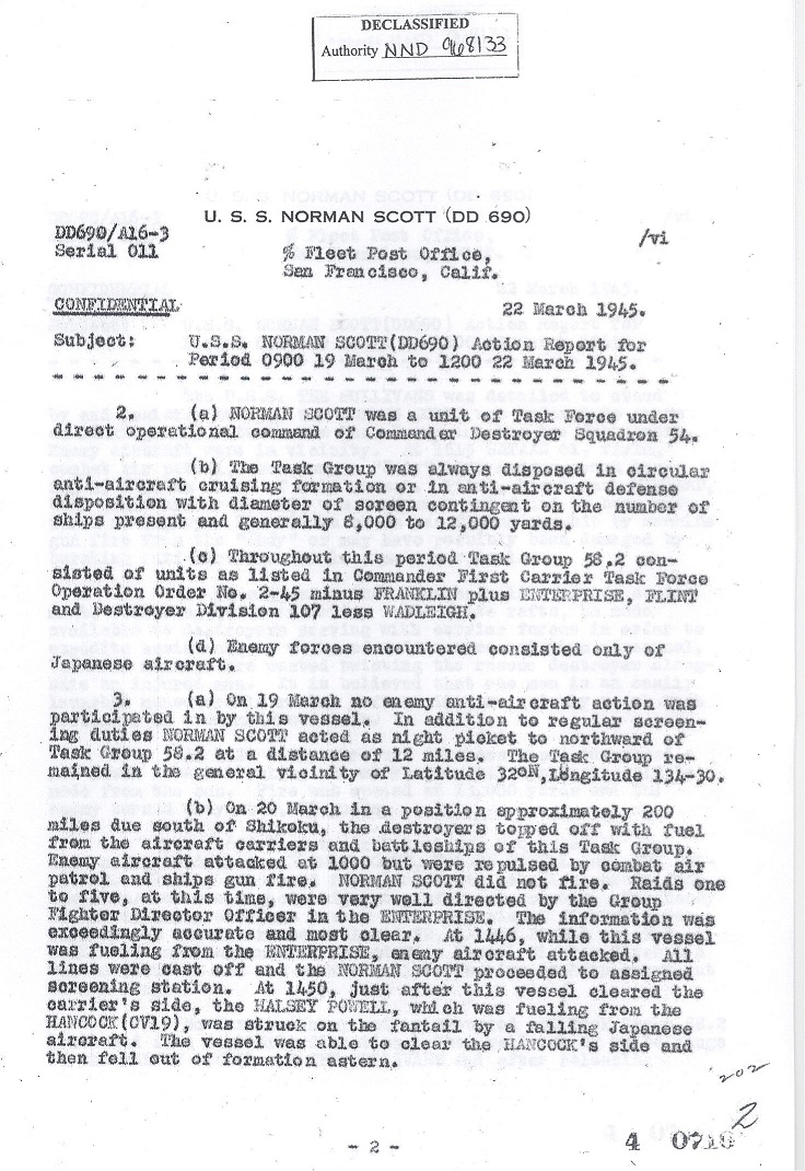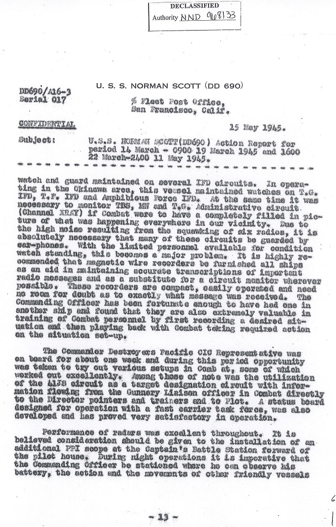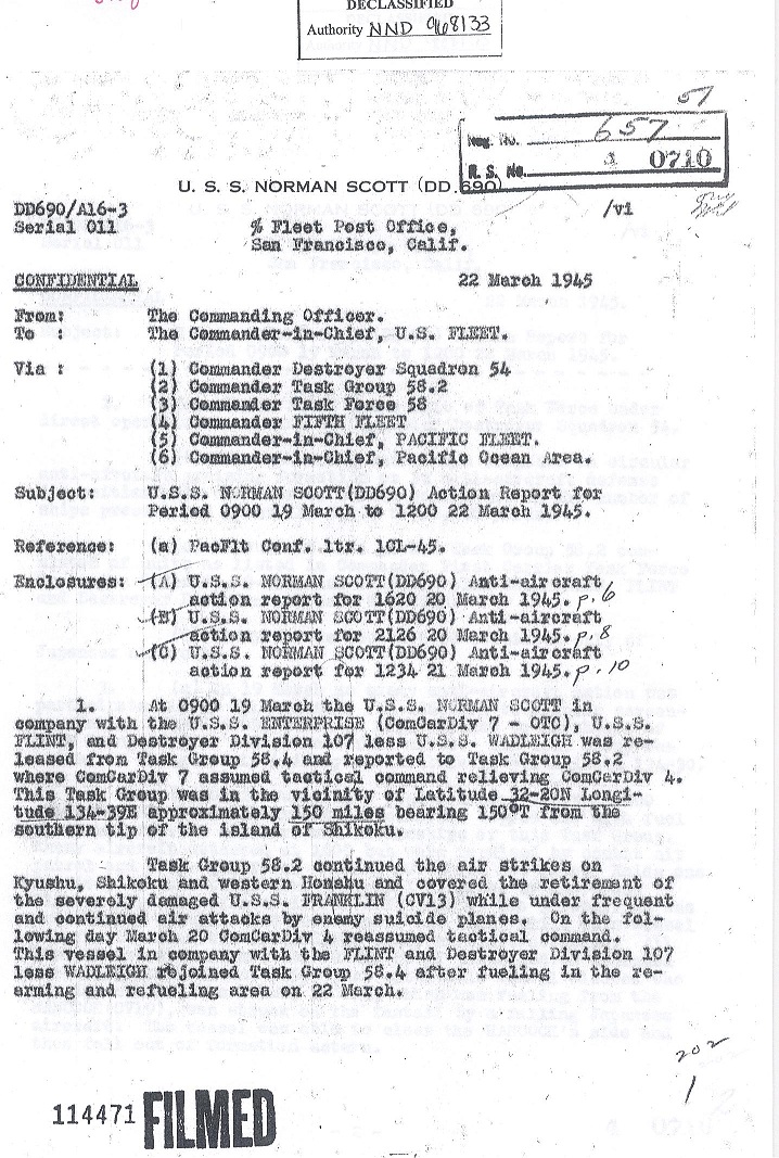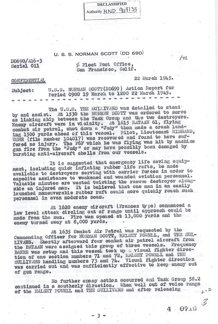| Action Report for March 19-22, 1945 |