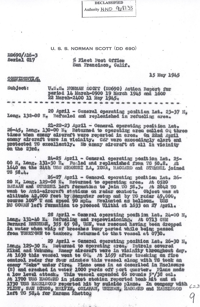 | Action Report for June 9, 1945 |
