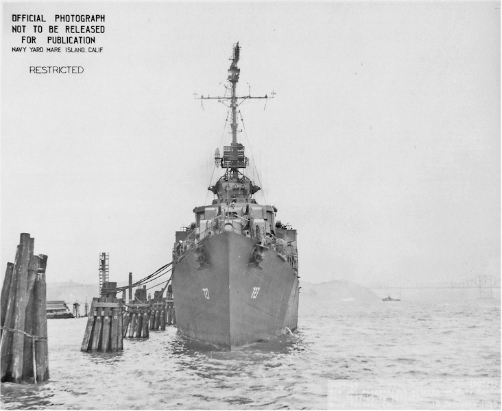 | 85k | Bow on view of USS De Haven (DD-727) moored at the South end of Mare Island on 10 December 1945. Navy Photo 7473-45 | Darryl Baker | |