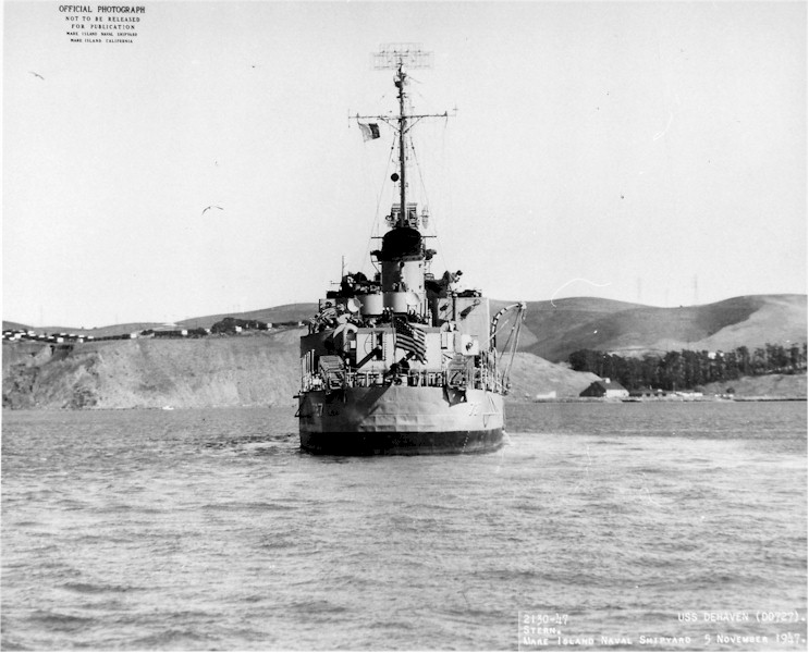 | 102k | Stern view of USS De Haven (DD-727) off Mare Island on 5 November 1947. Navy Photo 2130-47 | Darryl Baker | |