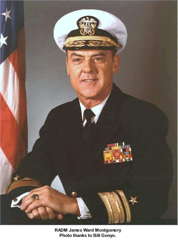 | 205k | This photo was originally published in the November 1960 issue of CruDesPac News. The four ships were manning the rail to salute President Eisenhower as he passed by in his barge. The President is standing topside in the barge, midships. The other ships in the picture are USS Wiltsie (DD 716), USS Hamner (DD718), and USS Morton (DD948). We were moored in San Diego Bay. | Al Creasy, ENS USS Morton | |