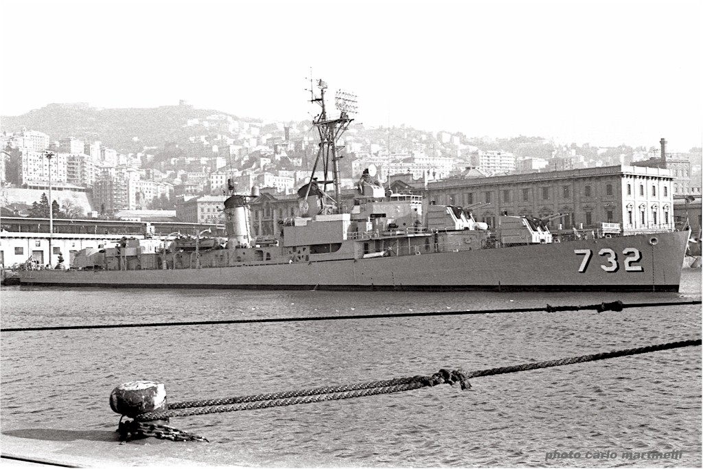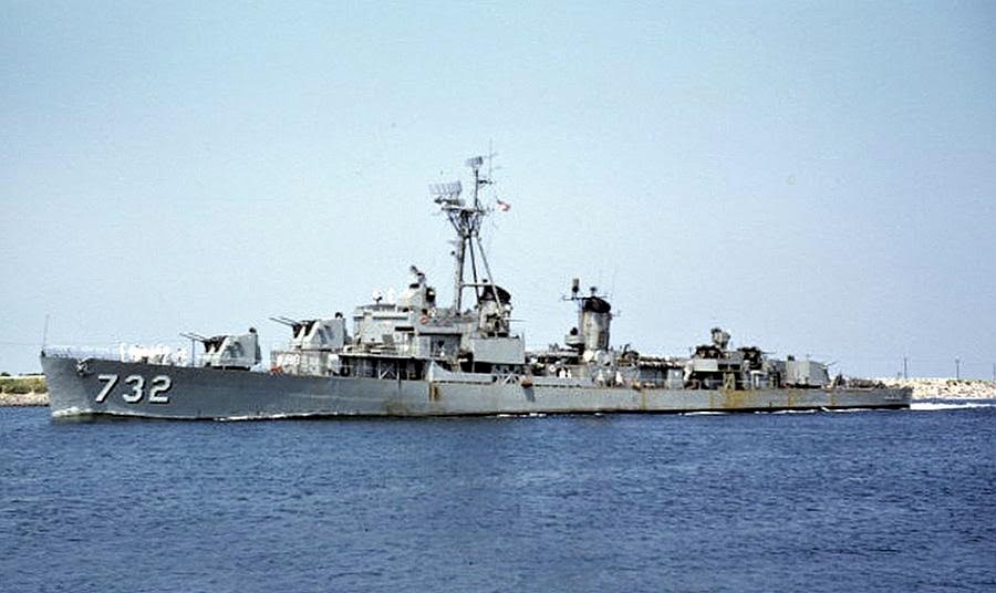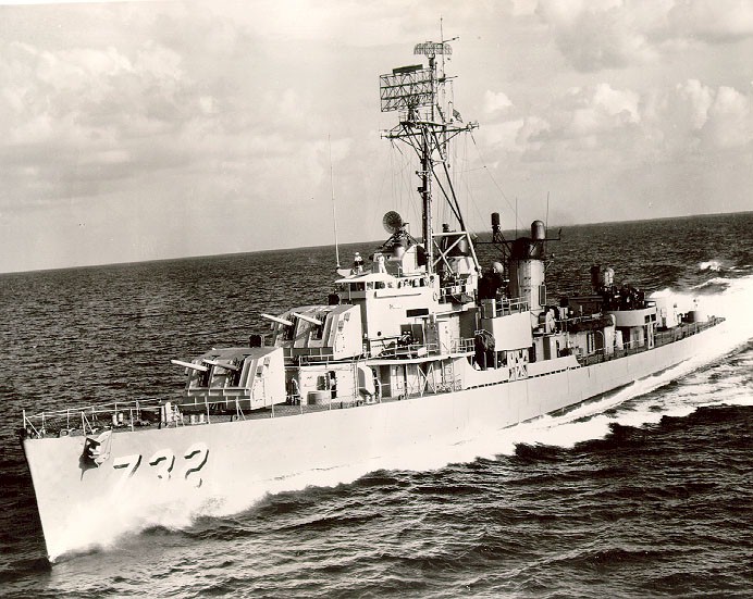 | 124k | November-December 1959, 300 miles east of the Florida coast, in the Miami/Fort Lauderdale vicinity. She was steaming North, returning to Newport, RI. In the photo, Don is the flying bridge lookout on the Starboard side and the Port lookout was McCutheon [sic]. This photo was taken from a helicopter from the carrier USS Forrestal (CVA-59). | Randy Kimes/Don Barker | |
