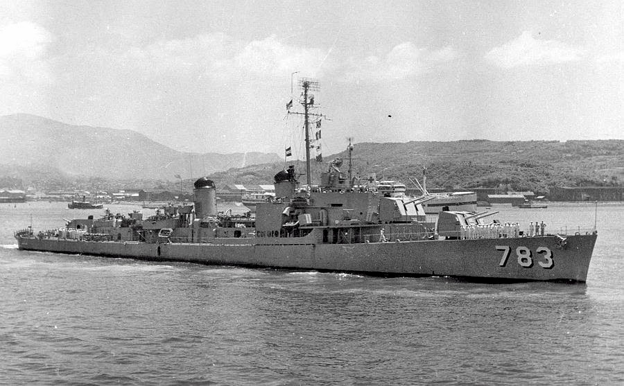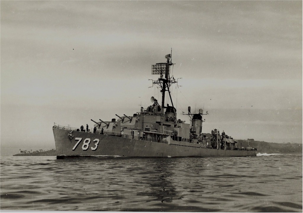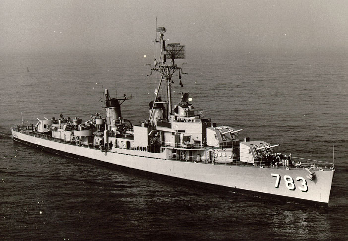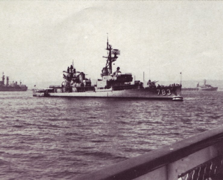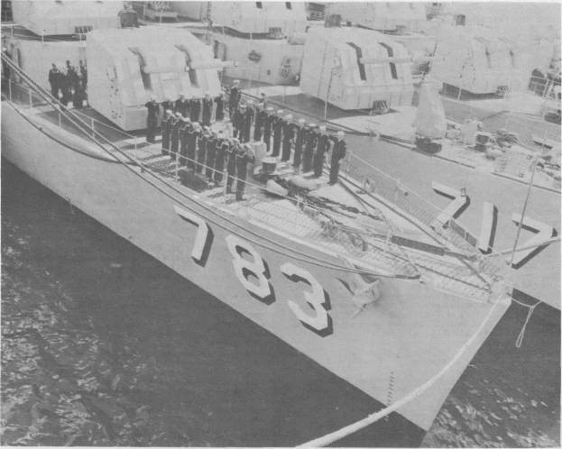 | 61k | Undated, location unknown. USS Gurke (DD-783) with crewmen under inspection. Gurke is shown nested alongside other destroyers including USS Theodore E. Chandler (DD-717), photo from DANFS. | Robert Hurst | |