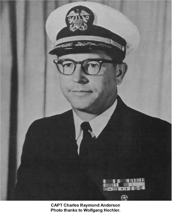 CDR Kenneth Loveland May 12 1945 - Jun 14 1946 (Later RADM) CDR William Leonard Tagg Jun 14 1946 - Aug 2 1947 (Later RADM) CDR Charles Emmett King Aug 2 1947 - Aug 18 1948 CDR William Warren Walker Aug 18 1948 - Mar 1950 CDR Frederick Malcolm Radel Mar 1950 - Aug 1952 CDR Edward Jerome Foote Aug 1952 - Jul 1954 CDR Edwin Miller Rosenberg Jul 1954 - Mar 1956 (Later RADM) CDR Ashley Jewell Little Mar 1956 - Nov 1957 CDR Marvin Dowdy Norton Jr. Nov 1957 - Dec 1958 CDR Stuart Townsend Edgerton Jr. Dec 1958 - Oct 1960 CDR Richard Eugene Kipe Oct 1960 - Aug 1962 CDR Charles Raymond Anderson Aug 1962 - Jul 1963 CDR Theodore Robert Kent Jul 1963 - Jan 1965 CDR Joseph Winkle Wilson Jan 1965 - Aug 1966 CDR James Francis Murphy Aug 1966 - Apr 1 1968 CDR Eugene Berthold Ackerman Apr 1 1968 - Jul 13 1969 CDR Ronald Allen Berger Jul 13 1969 - May 1971 CDR Daniel Theodore Holly Jr. May 1971 - Nov 1972 CDR Joe Lambert Holland Nov 1972 - Jan 1975 CDR Compton Eugene Ward Jan 1975 - Jan 30 1976