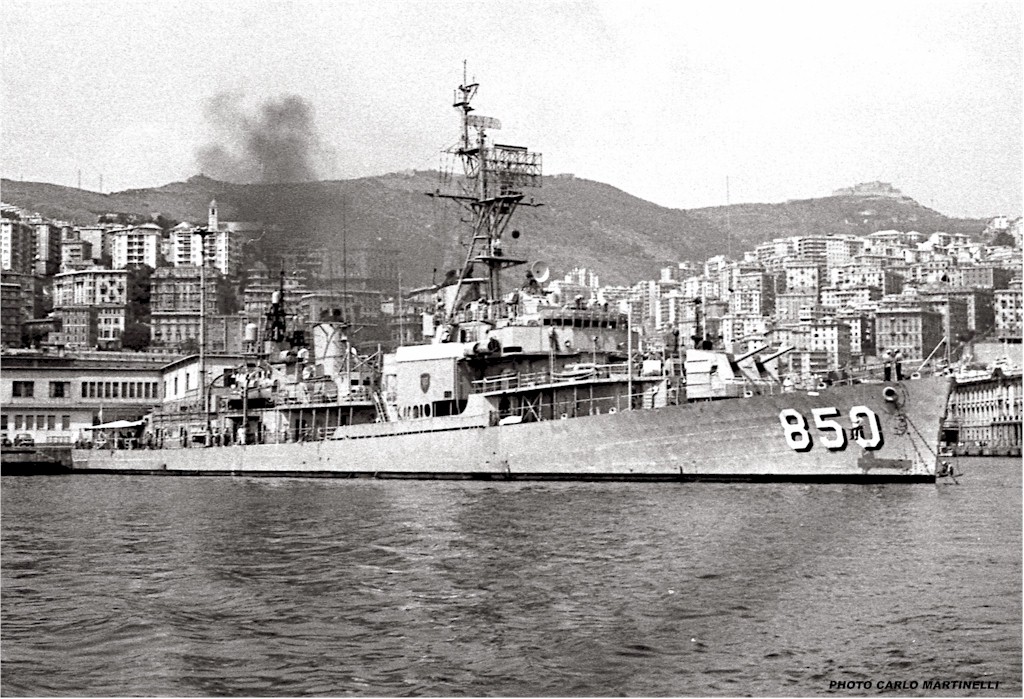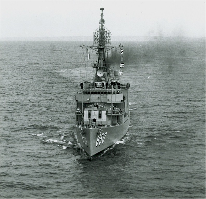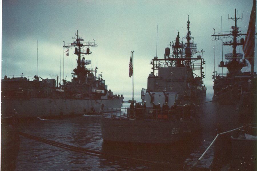 | 92k | USS Joseph P. Kennedy, Jr. (DD 850), USS William M. Wood (DD 715), and USS Charles F. Adams (DDG 2) at Barcelona, Spain, in late January 1970. If you look closely, you will notice that Joseph P. Kennedy, Jr. was fitted with ULQ-6, while William M. Wood lacked this active countermeasures system. | Fabio Peña | |