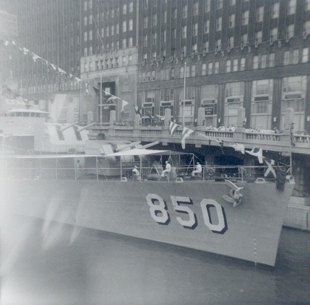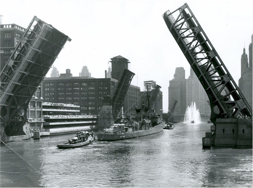 | 50k | A series of nine views of the USS Joseph P. Kennedy, Jr. (DD-850) during a visit to Chicago, 03 July 1959. Photos taken from the bridges around the Merchandise Mart on the Chicago River. | Allan MacArthur Wilson | |