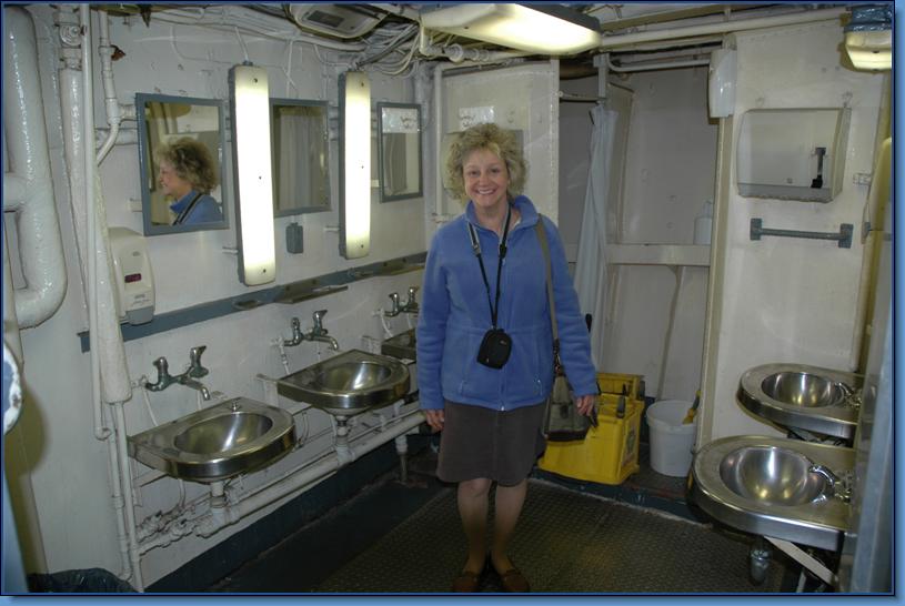 | 61k | As above. Kathy looks over the forward enlisted head located on the second deck just forward of the mess decks. | Larry Backus and Kathryn Lee Huculak | |