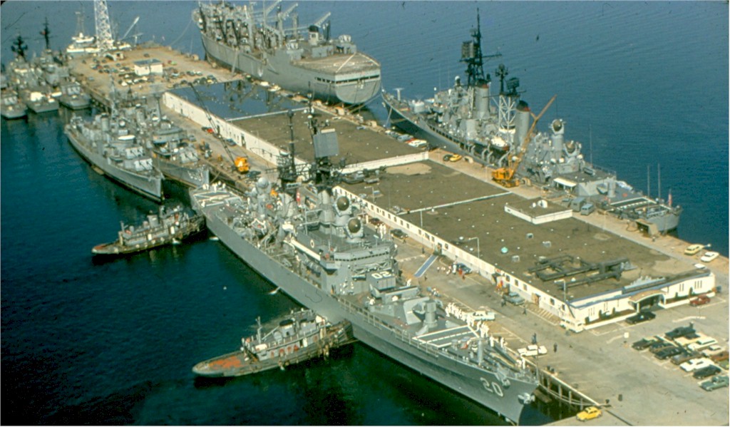 | 168k | USS Richmond K. Turner (CG-20) and behind her with the yellow crane is the USS Joseph P. Kennedy, Jr (DD-850). Early 1972 at Pier 2 in Newport, RI prior to decommissioning. Navy Photo CTR--K-101613. | Ed Zajkowski | |