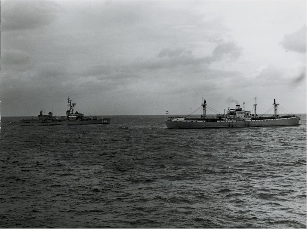| 169k | Kennedy personnel boarding the Lebanese freighter Marucla during the Cuban Missile Crisis, 26 October 1962. The freighter, under Soviet charter, was the only vessel actually stopped and boarded during the crisis. No prohibited material was found, and the ship was allowed to continue its voyage. | Ed Zajkowski | |