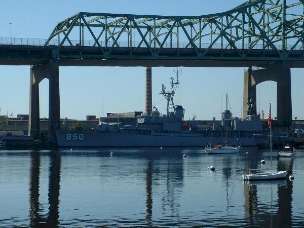 | 75k | USS Joseph P. Kennedy (DD-850) sits in Battleship Cove, Fall River, Massachusetts. The cove is located just north of the former mouth of the Quequechan River, which is now the site of the Braga Bridge (background of picture), Spring 2004. Photo taken by Todd S. Custadio. | Robert Hurst | |