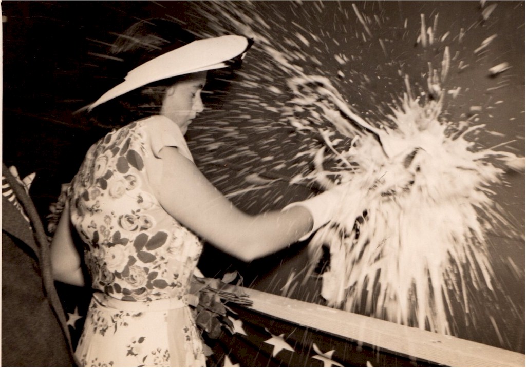 | 168k | Miss Jean Kennedy christening the ship on 26 July 1945. | S. Dale Hargrave | |