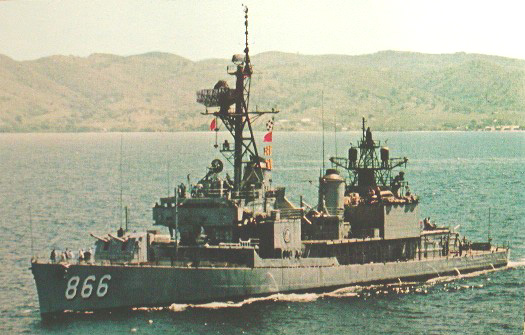 855k | Cone (DD-866) at Genoa, circa 1959-1966. Note the Destroyer Squadron Four emblem on the forestack- Joining the squadron in April 1959. USS Cone had been assigned to Destroyer Squadron Six through the early to mid 1950s. | David Upton |