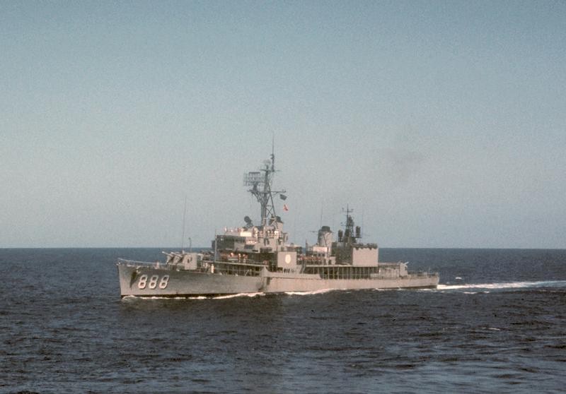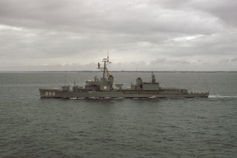 | 186k | The Greek destroyer HS Kanaris (D-212, ex-USS Stickell, DD-888) underway during Operation DRAGON HAMMER, on 1 April 1988. Photograph taken by PH3 Douglas E. Houser. DN-SC-88-08292. | Robert Hurst | |