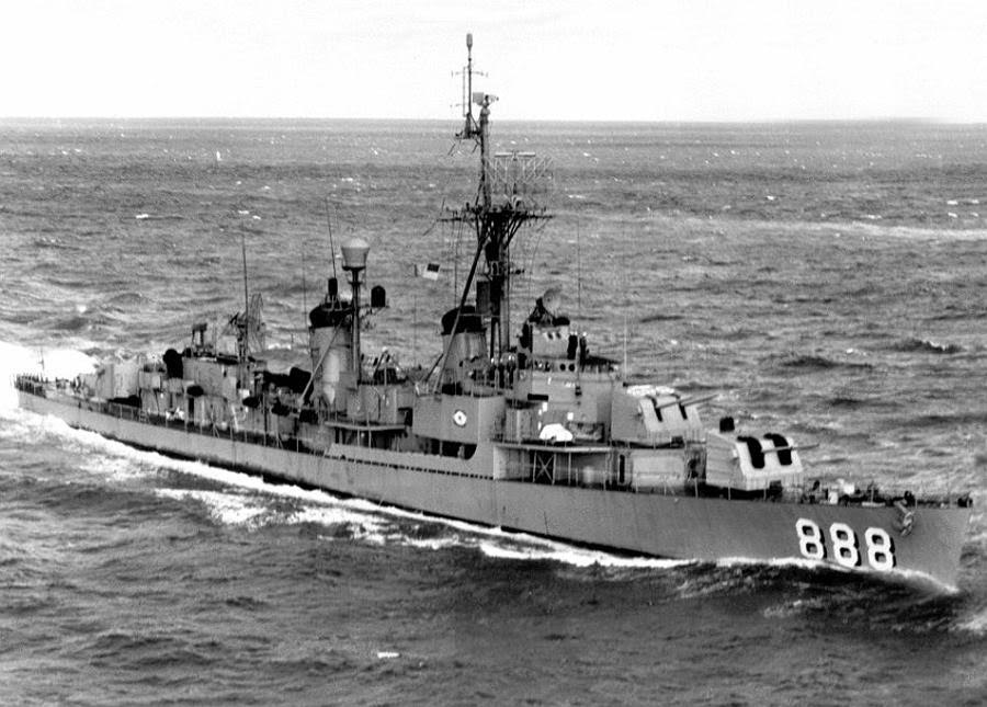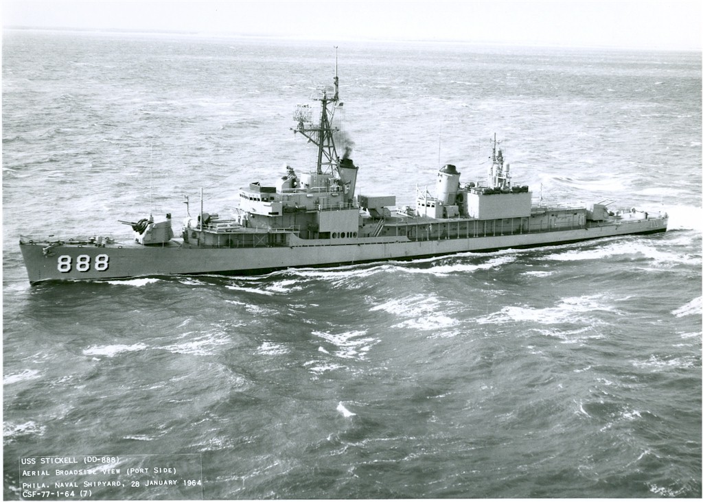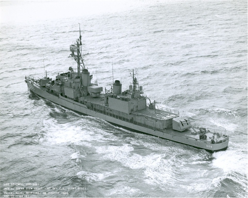 | 59k | USS Stickell (DDR-888) underway in 1958. Stickell was assigned to the battle group of the USS Franklin D. Roosevelt (CVA-42), from which this photo was taken. Photo from the USS Franklin D. Roosevelt website, taken by Jim Mulligan, USN. | Robert Hurst | |