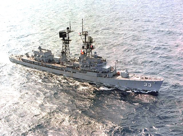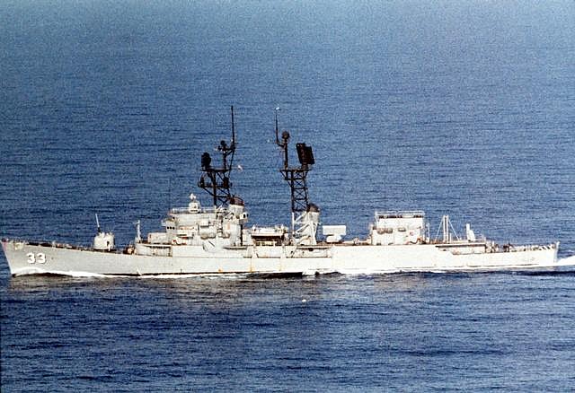 | 93k | Undated, location unknown, a port beam view of the guided missile destroyer USS Parsons (DDG-33) underway as part of the aircraft carrier USS Midway (CV-41) battle group. | Fred Weiss |