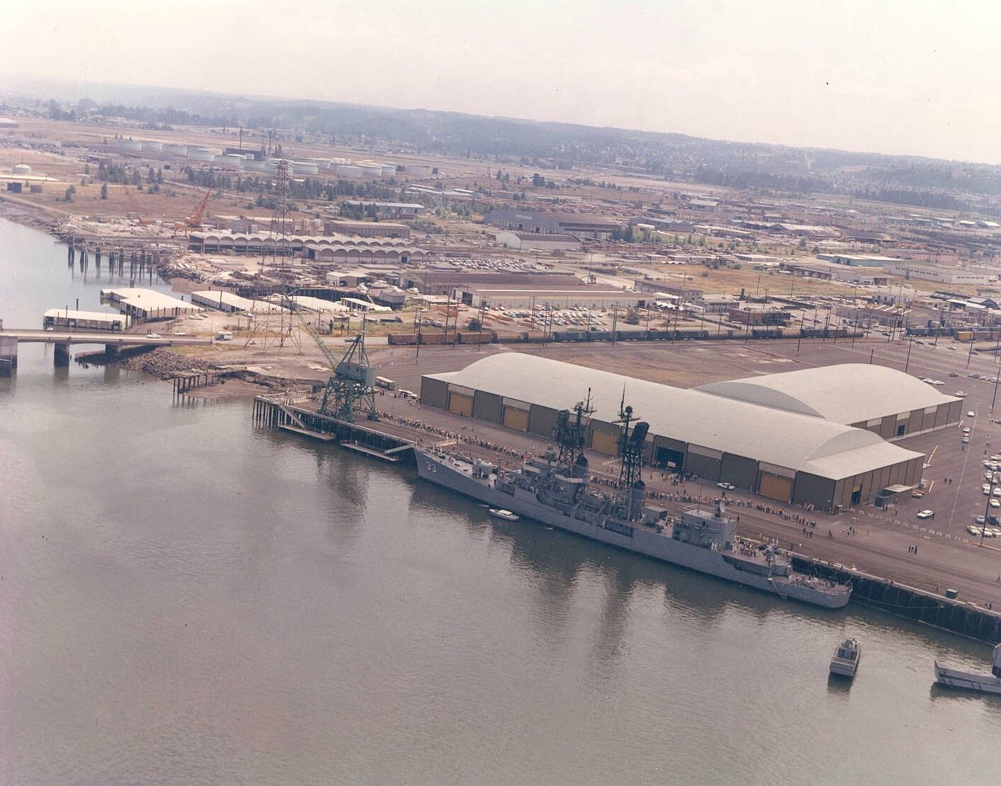 | 82k | With crowds gathering for ship tours, the USS Parsons (DDG-33) moored at the Port of Tacoma Pier 4 on 1 July 1969. The ship sustained a minor accident while easing into Pier 4 on 30 June, smashing Pier 4's gangway and float.