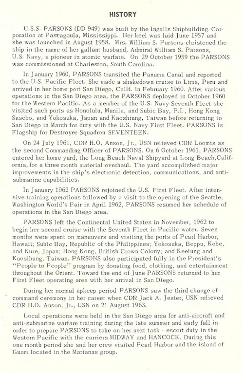 | 177k | USS Parsons (DD 949) prior to conversion to DDG. Photo from the collection of the Vallejo Naval and Historical Museum. | Darryl Baker |