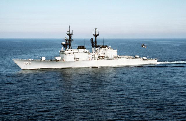 | 51k | A port quarter view of the Spruance class destroyer USS OLDENDORF (DD-972) underway off the coast of San Diego, California. An SH-2F Light Airborne Multi-Purpose System (LAMPS) helicopter is on the ship's flight deck. Photo by PHC KRISTOFFERSEN dated January 6 1984. | - |