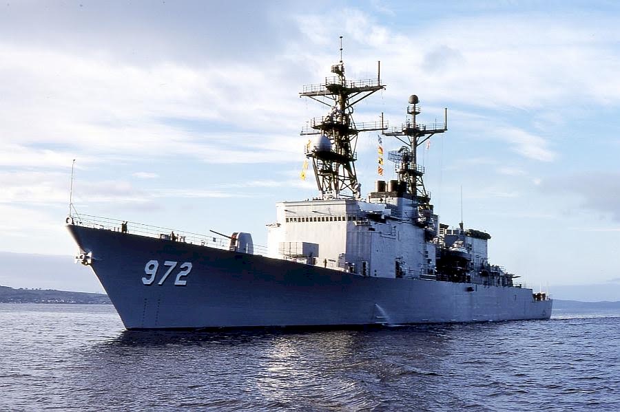 | 71k | January 6 1984, Pacifiv Ocean, a starboard bow view of the destroyer USS Oldendorf (DD 972 ) underway. US Navy photo. | Fred Weiss |