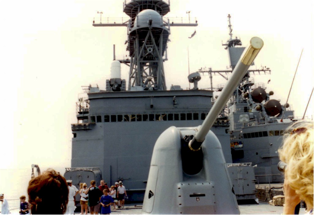 | 127k | DN-ST-87-07120. Crew members stand by at refueling station aboard the destroyer USS CONOLLY (DD-979) during an underway replenishment with the battleship USS IOWA (BB-61). Photo by PHC Jeff Hilton, August 1 1986. | Bill Gonyo |