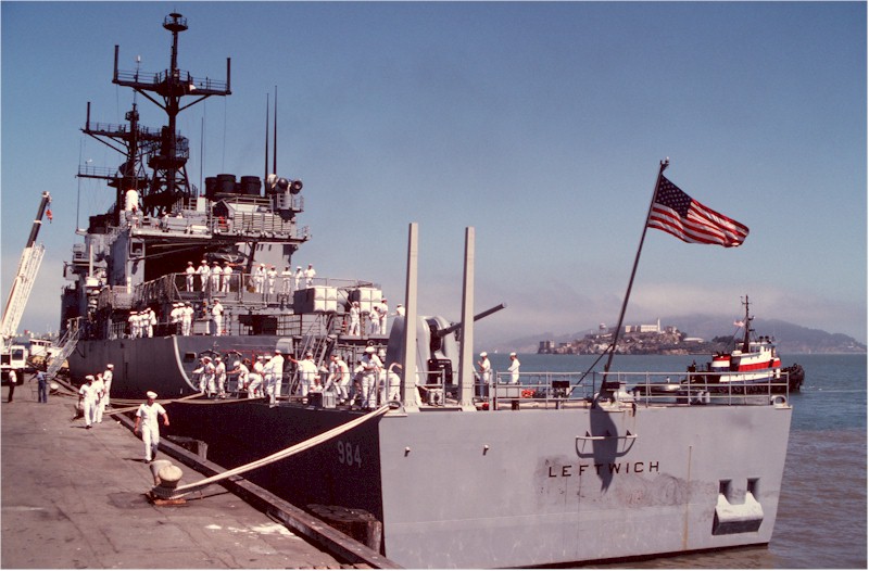 | 168k | USS Leftwich (DD-984) at the Navy's No Ka Oi Shipyard, Pearl Harbor, HI, July 1985. | Richard Leonhardt |