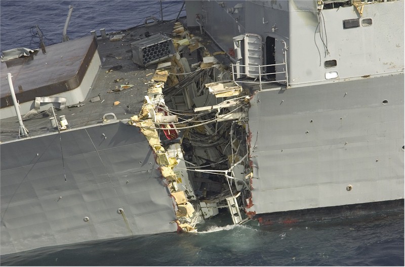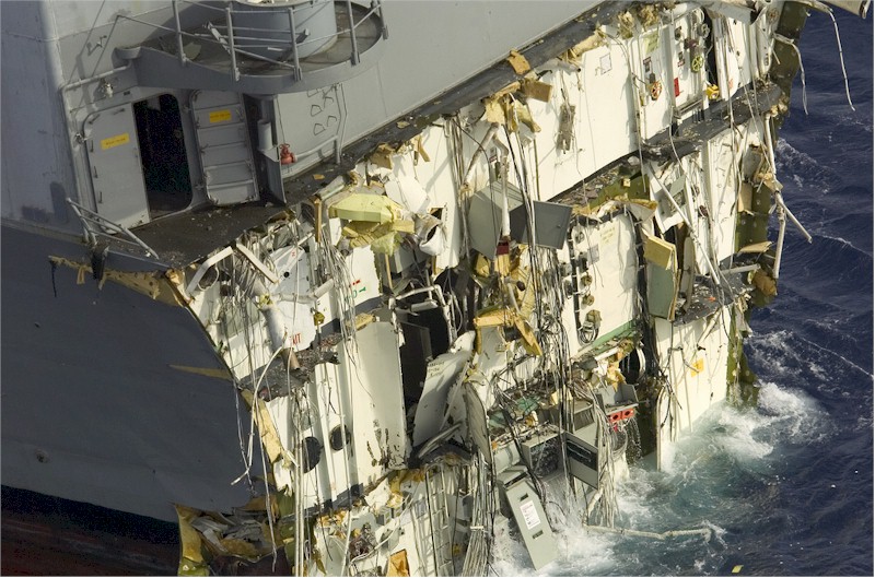 | 86k | As above. This image displays the Fife after taking a practice round that went completely through the ship. Close inspection of this photo will reveal a rush of water coming out from where the round passed near her bottom end. | Joe Gardella |