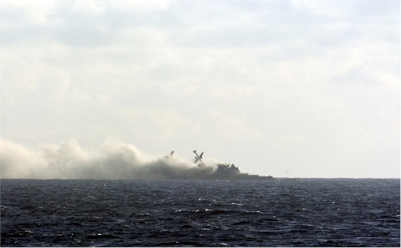 | 140k | A series of seven photos taken by PH1 (AW/SW/NAC) Keith DeVinney taken during SINKEX August 23 2005 in the Pacific. This image displays a hit by a MK 48 Torpedo. | Joe Gardella |