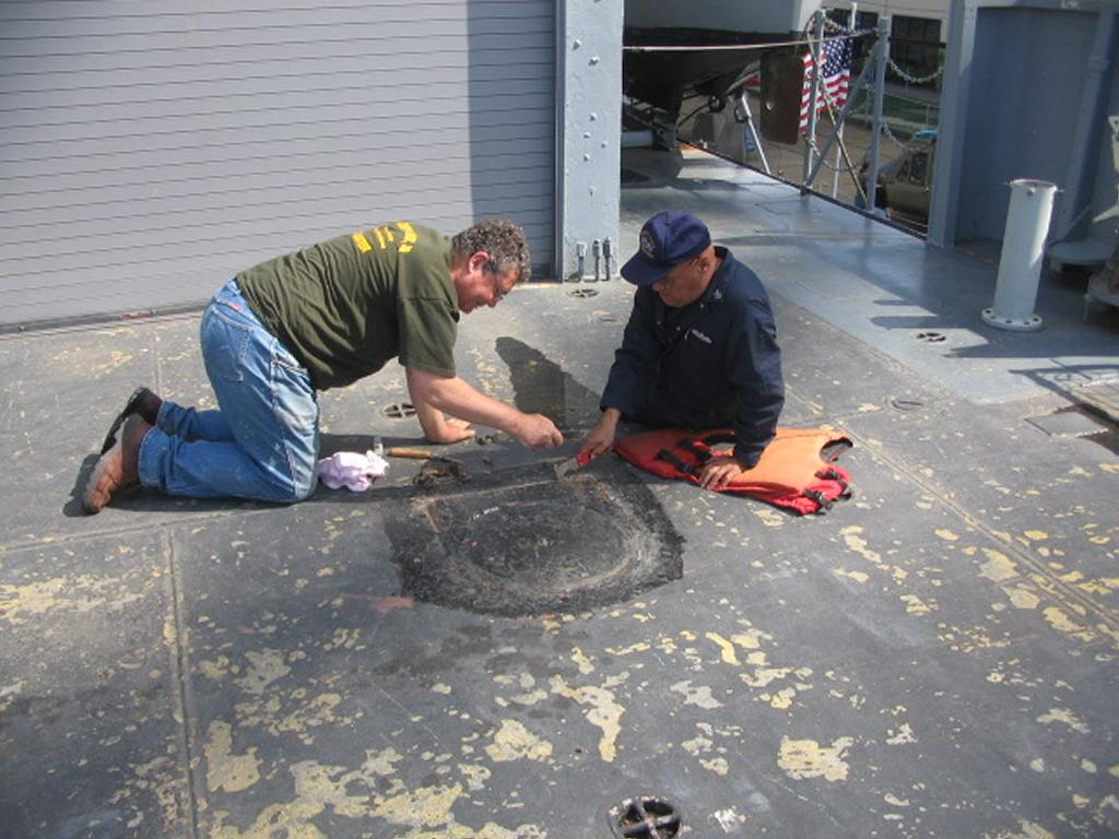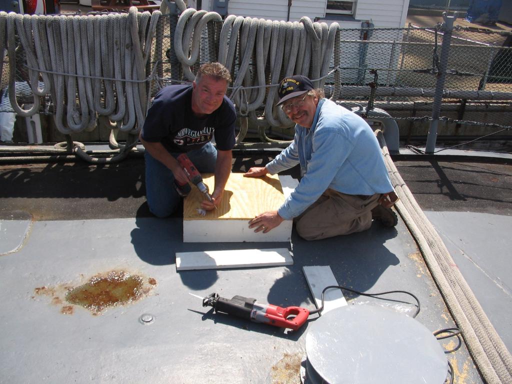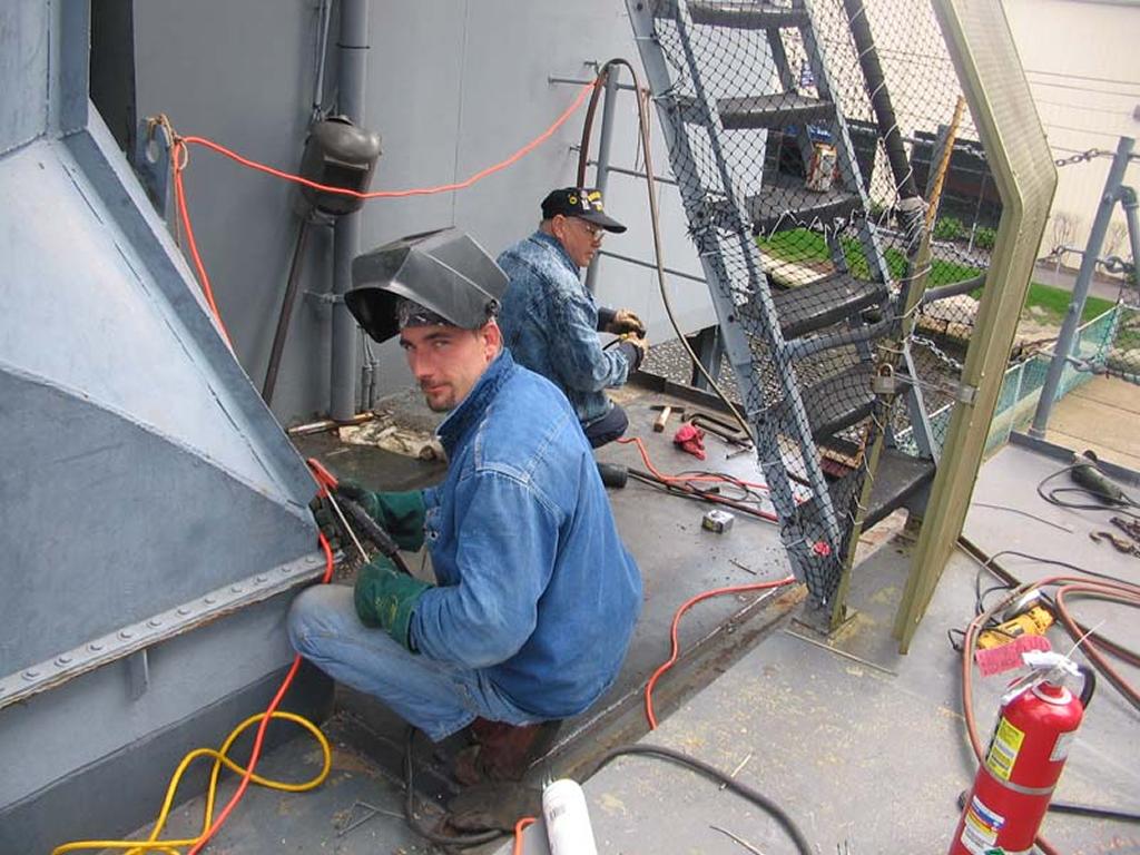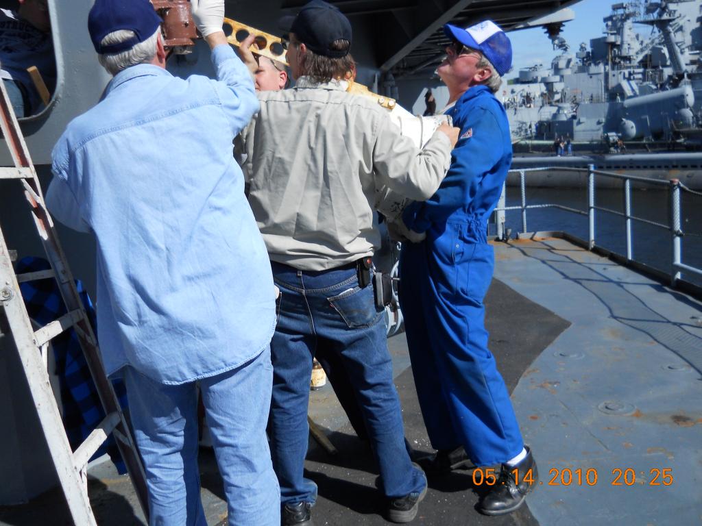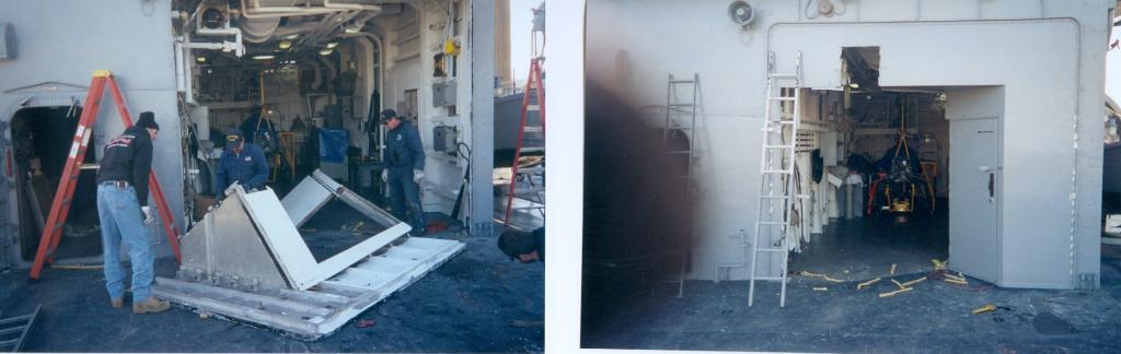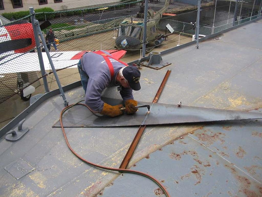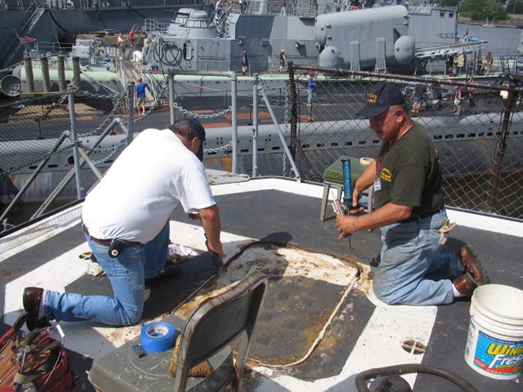 Volunteers replacing the aft expansion joint. The joint was leaking