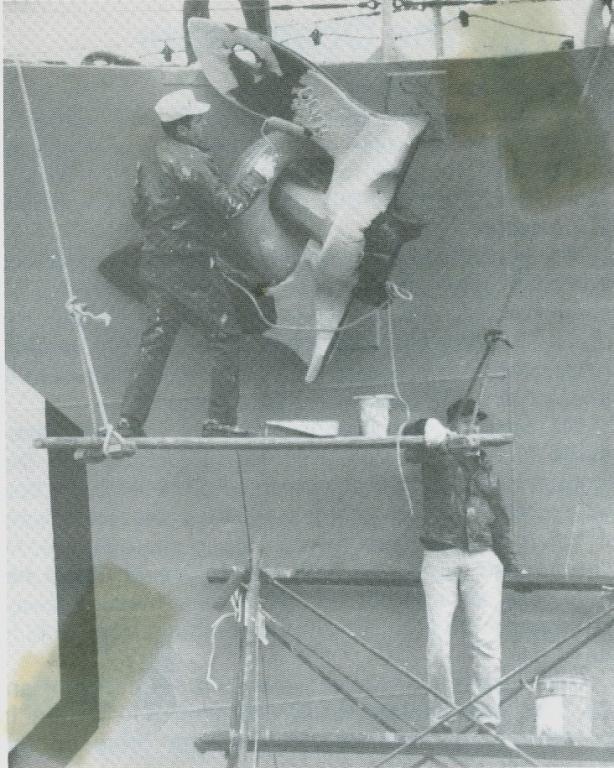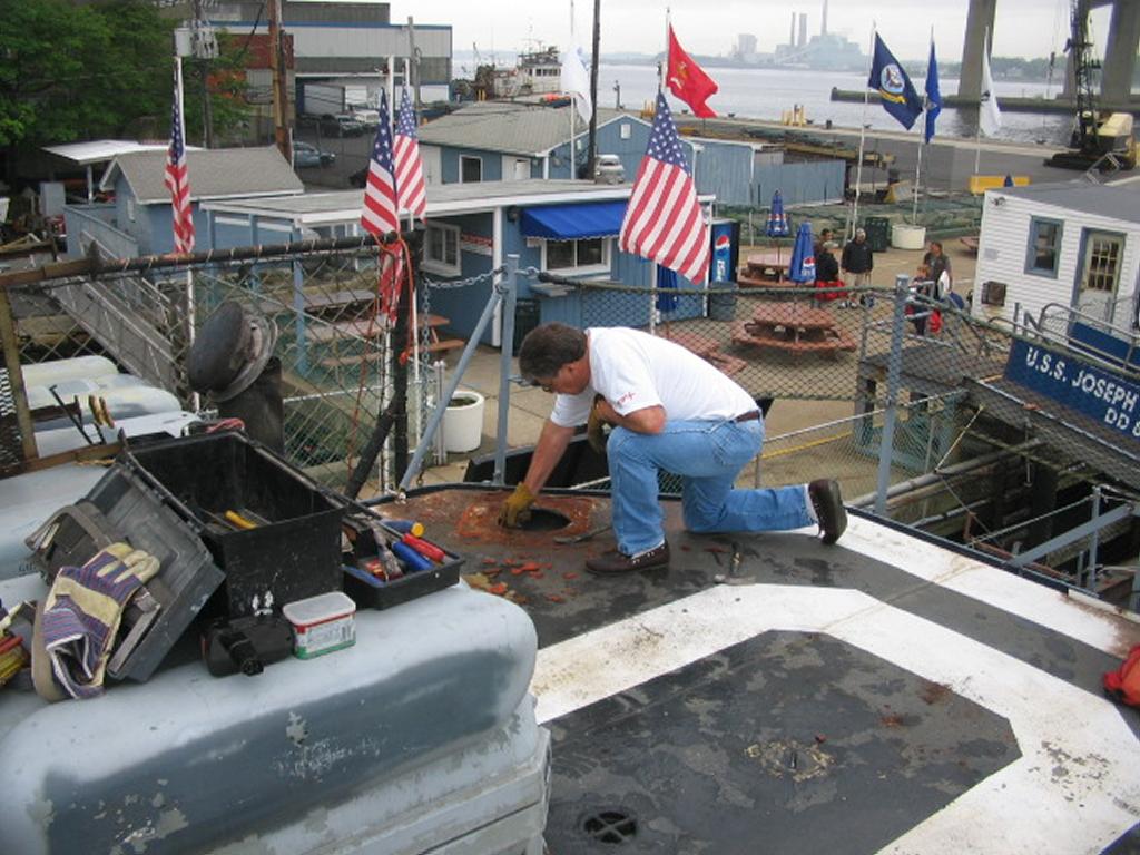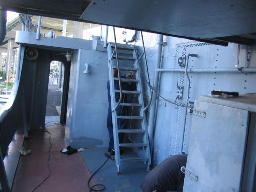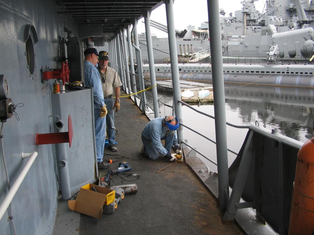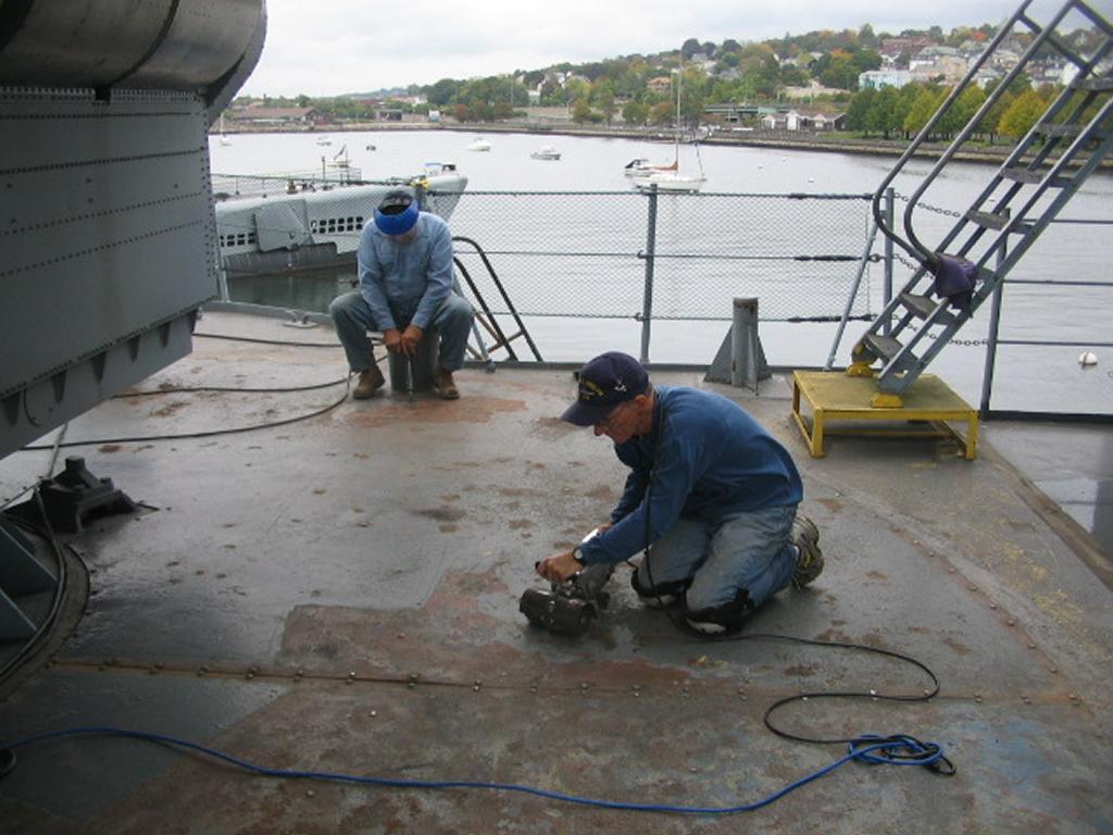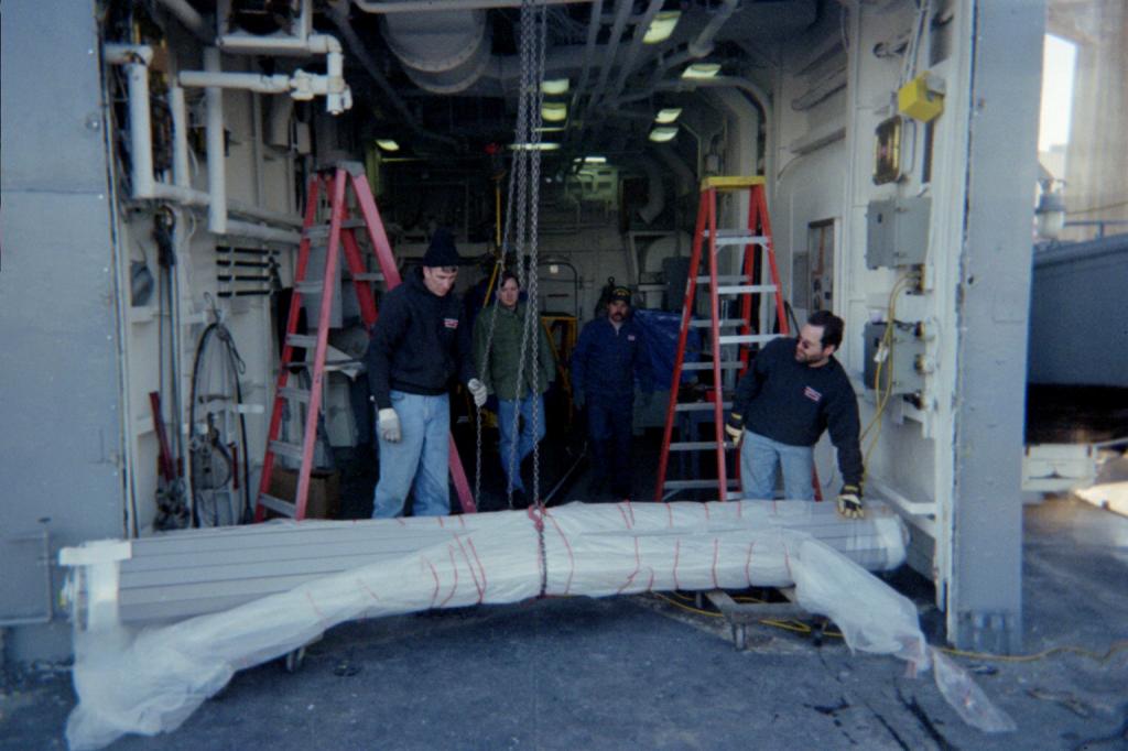 Volunteers replacing the aft expansion joint. The joint was leaking
