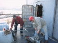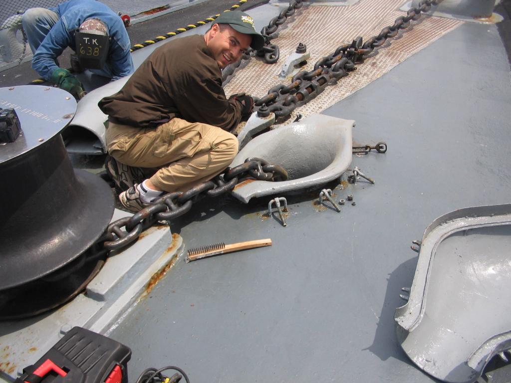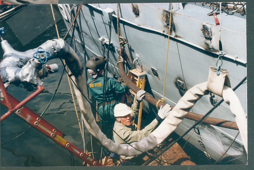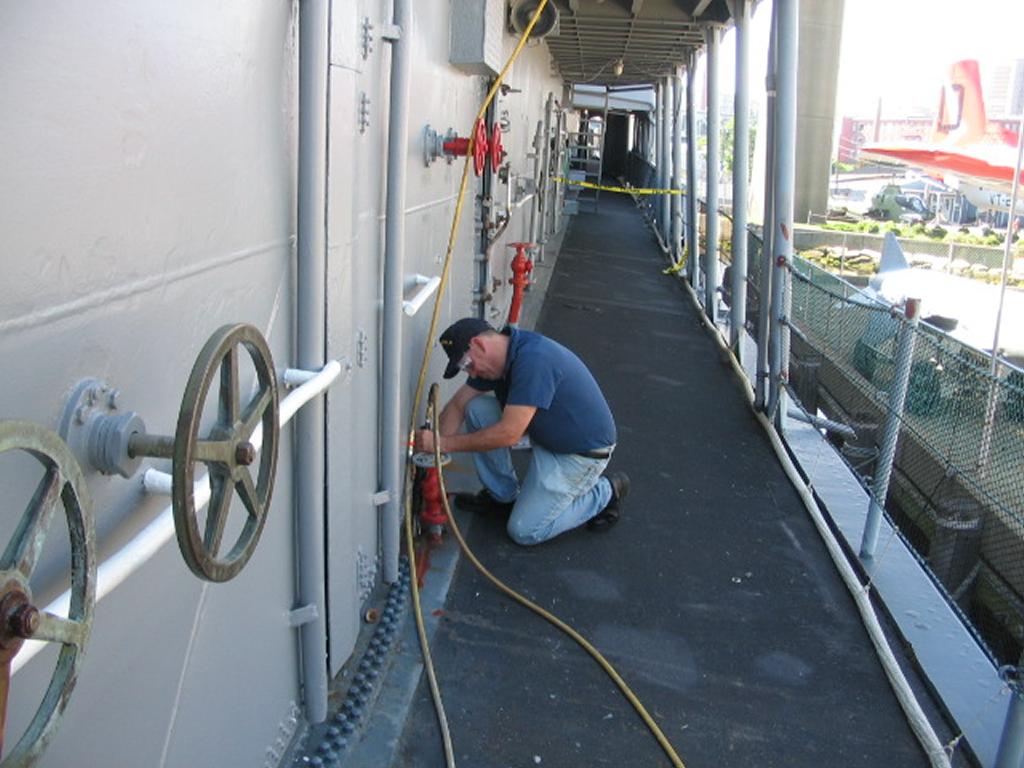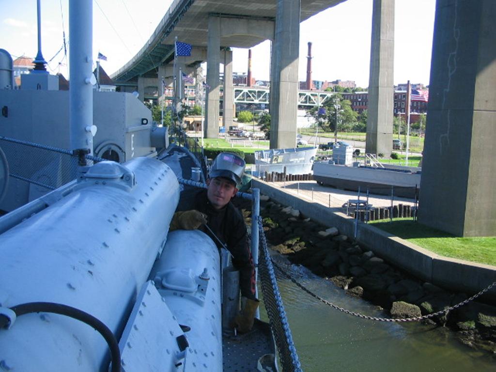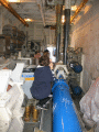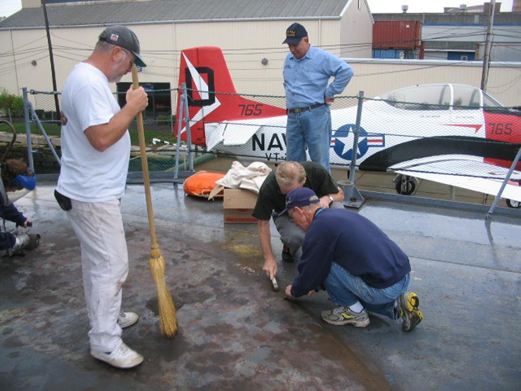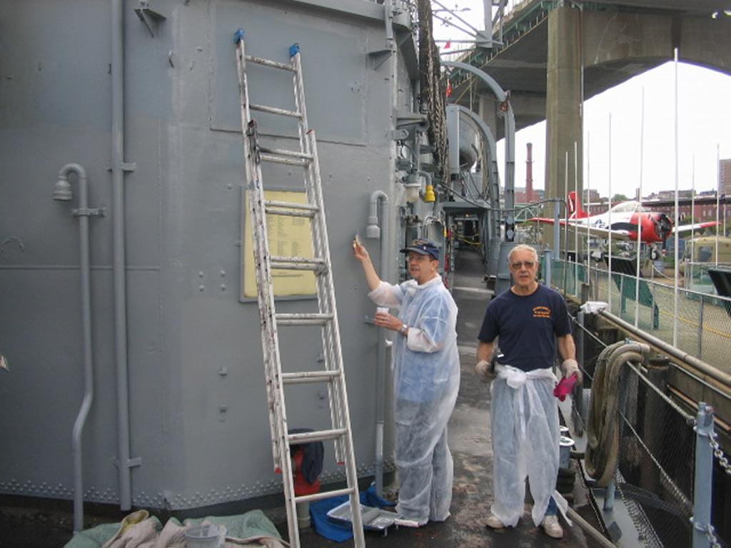 Volunteers replacing the aft expansion joint. The joint was leaking