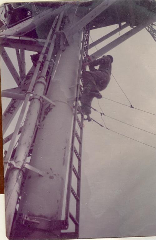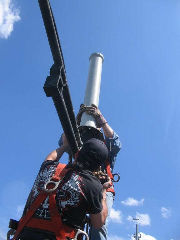 Replacing ECM Antenna on aft mast |