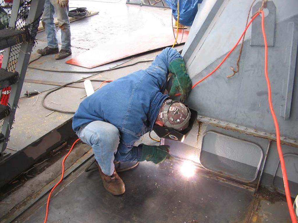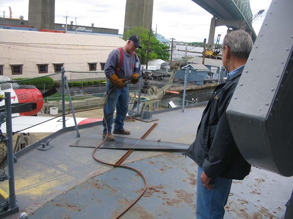 one weekend, the crew prepped the old deck, the new piece, welded it water