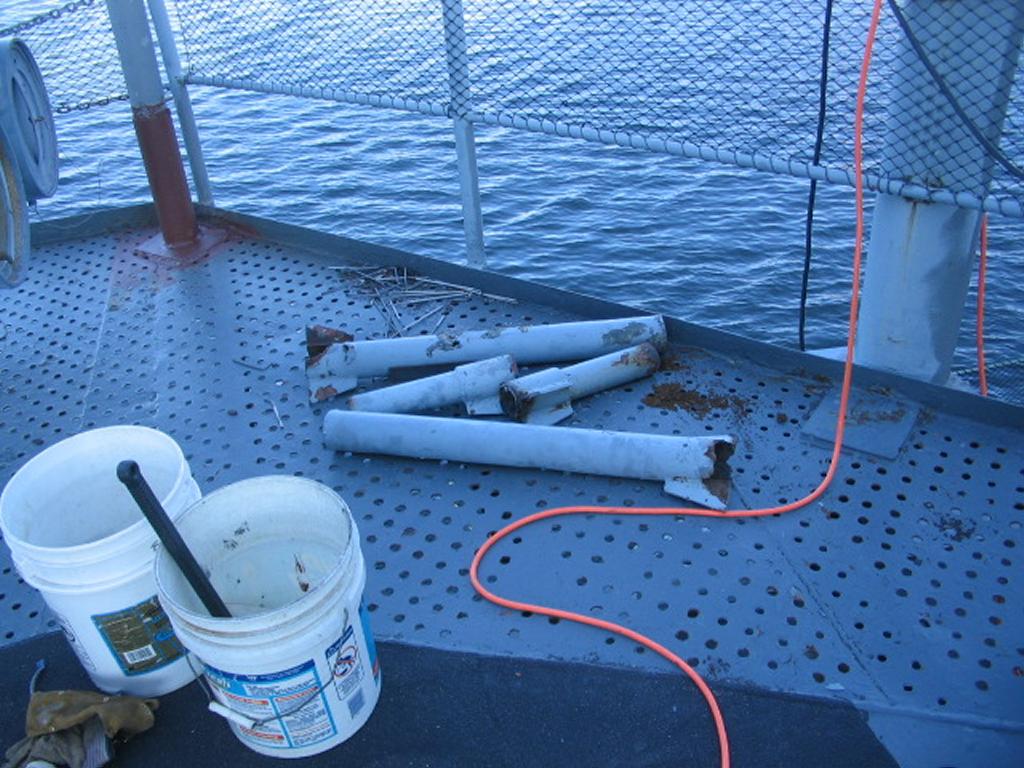 | Decayed Davit Base repaired by volunteers |