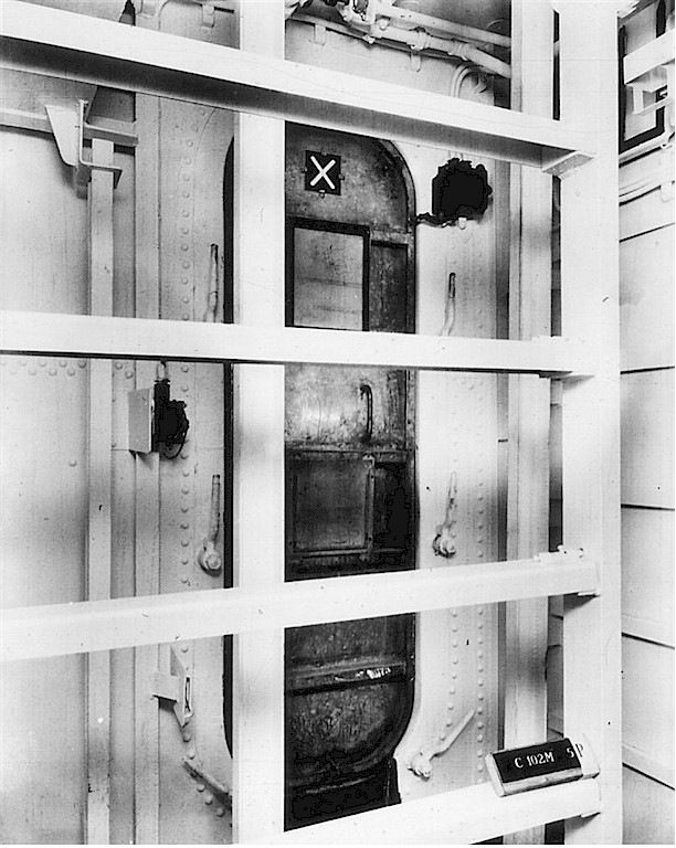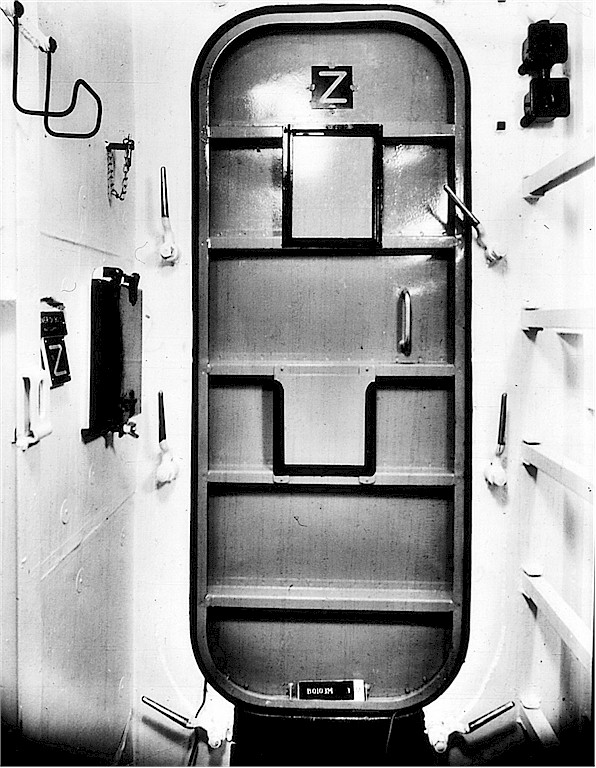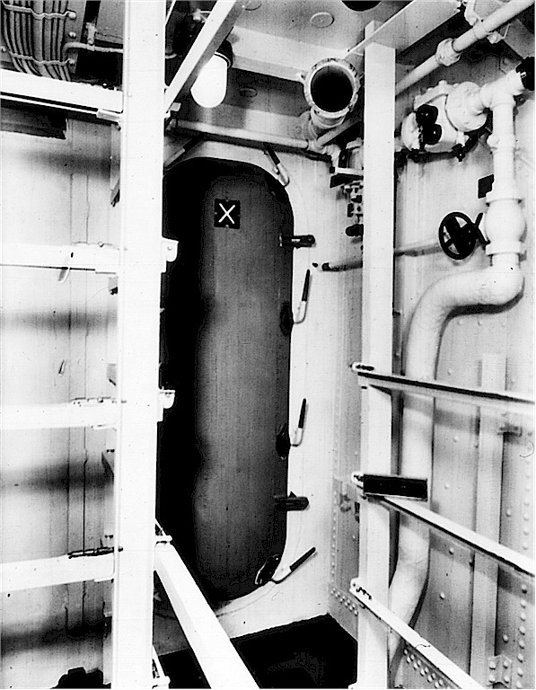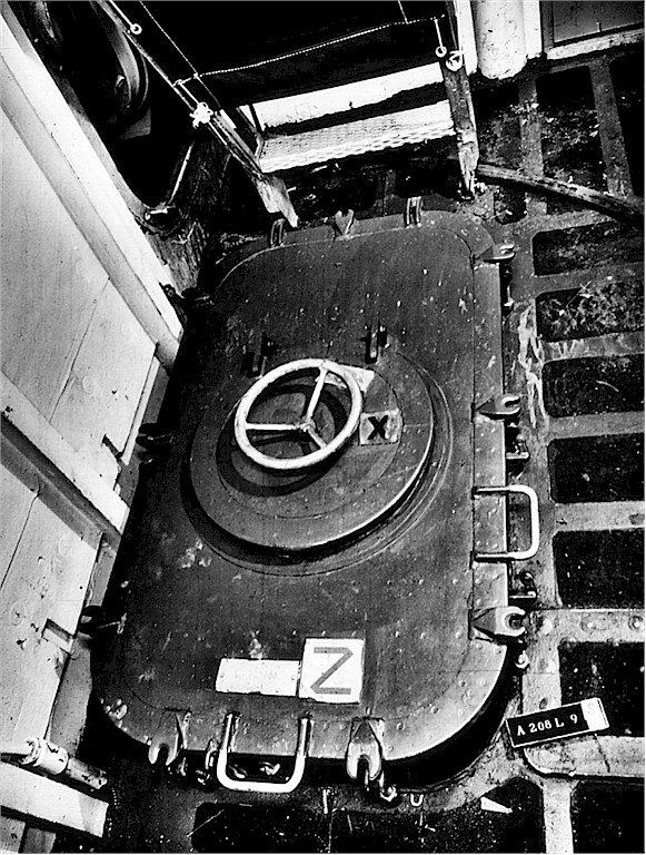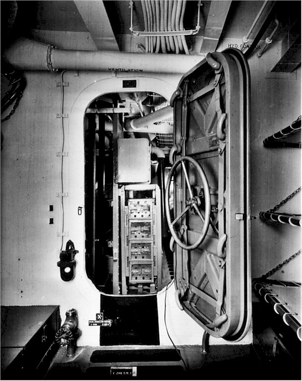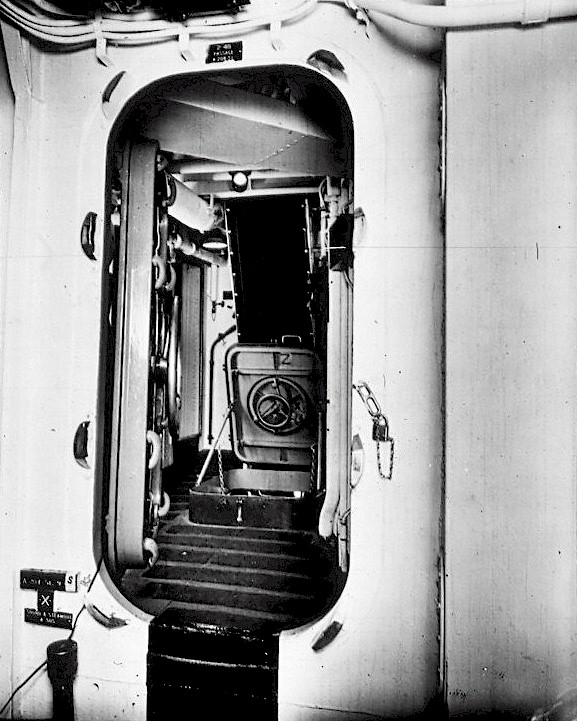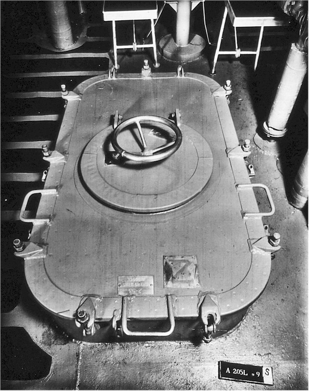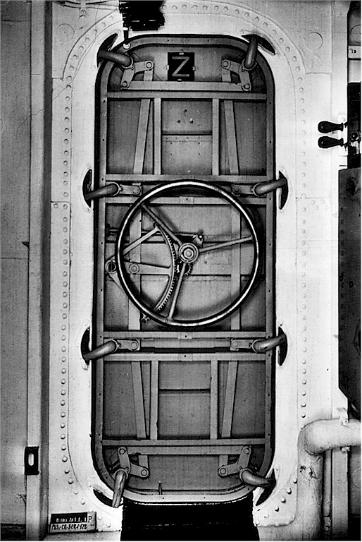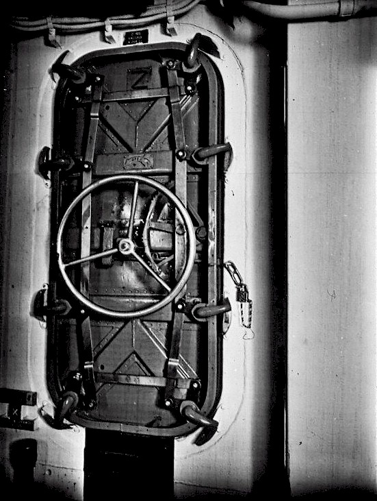 Main Deck Aft--fantail hatch #1-189, standard water tight hatch going from main deck to
