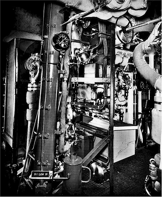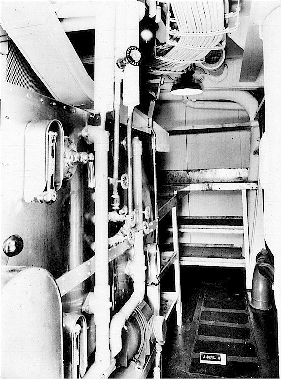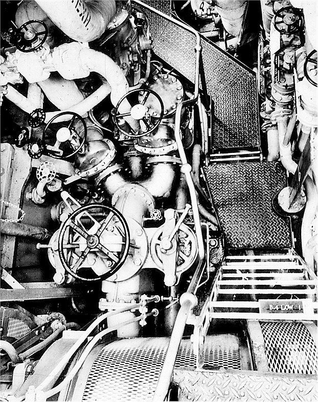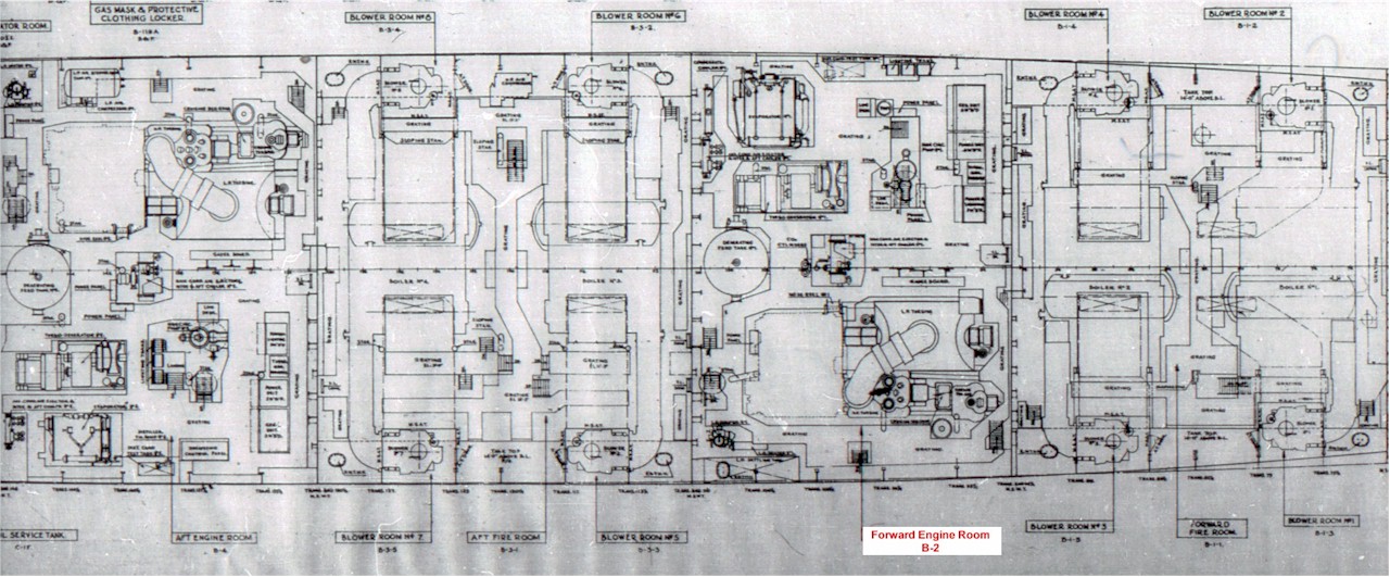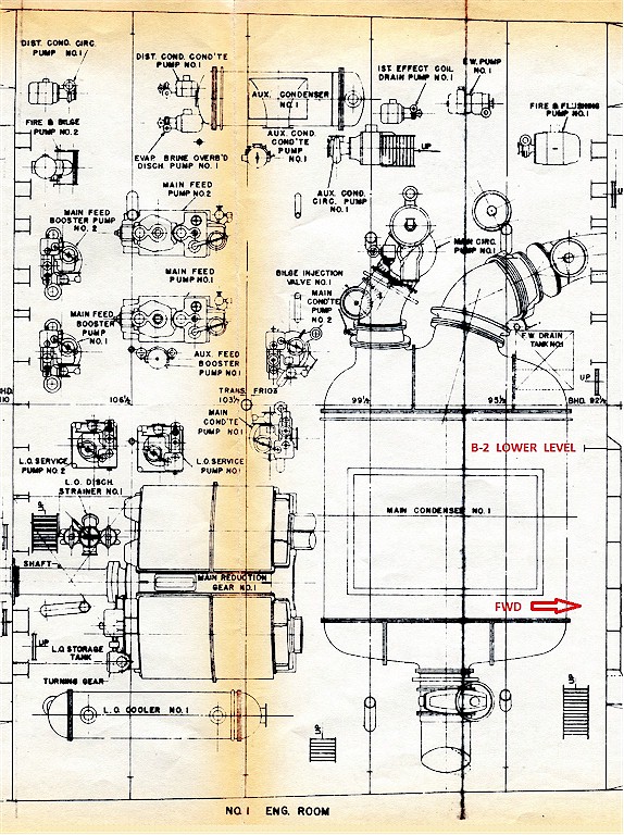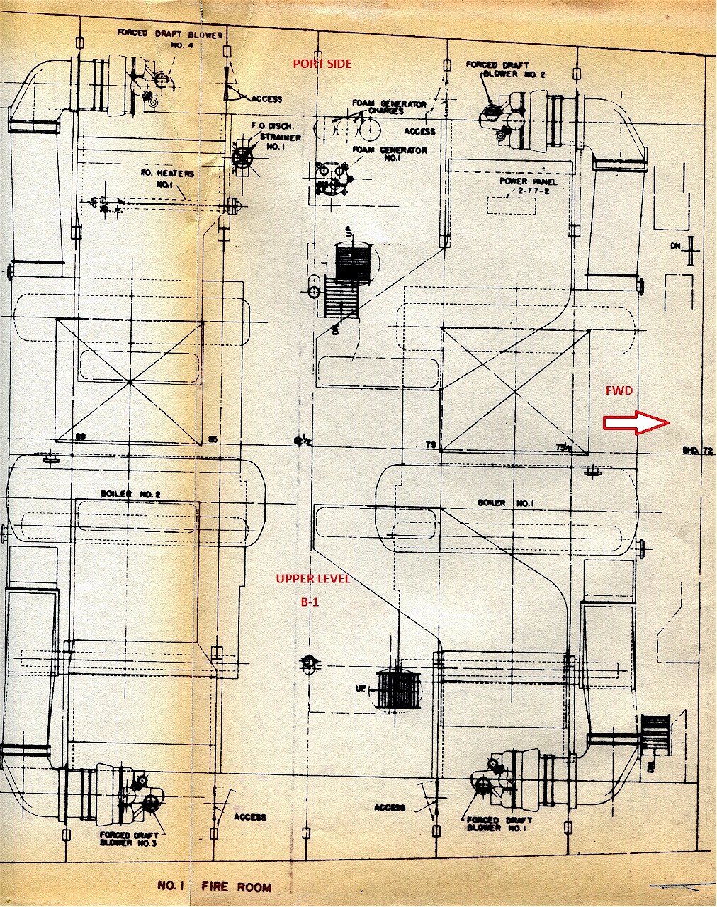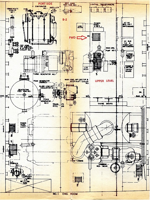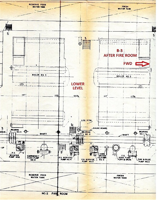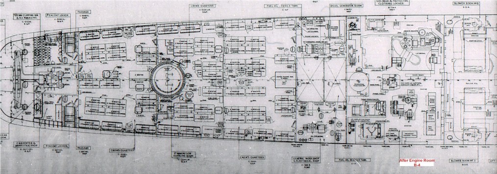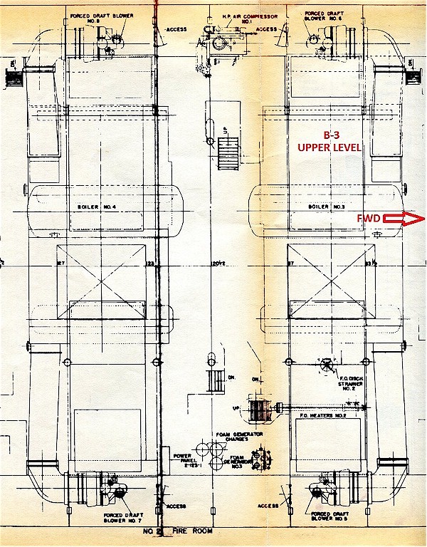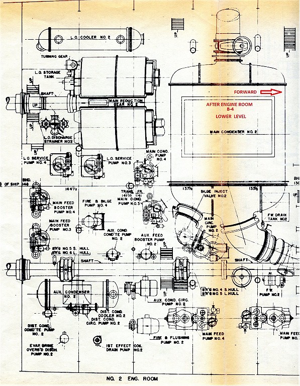 forward from the B-4 (aft engineroom) hatch, to the right is after